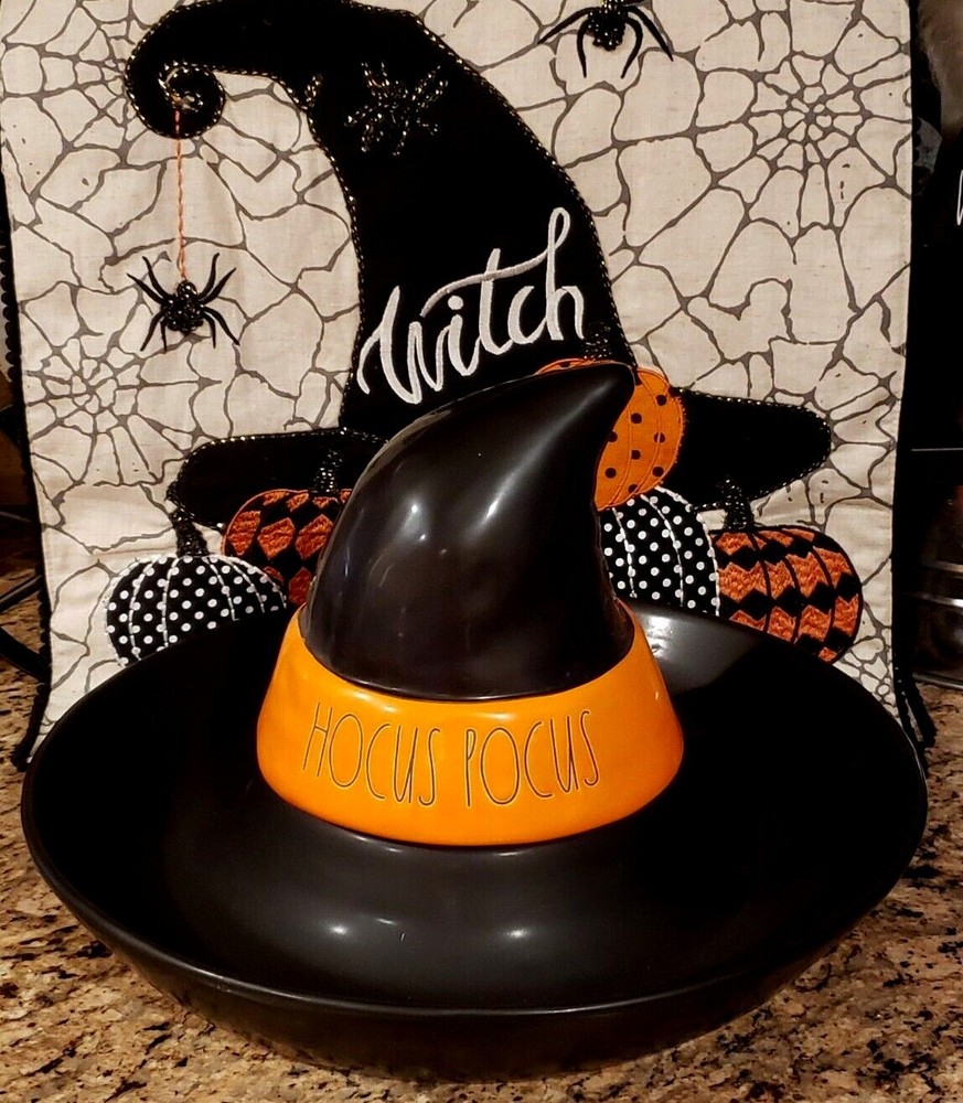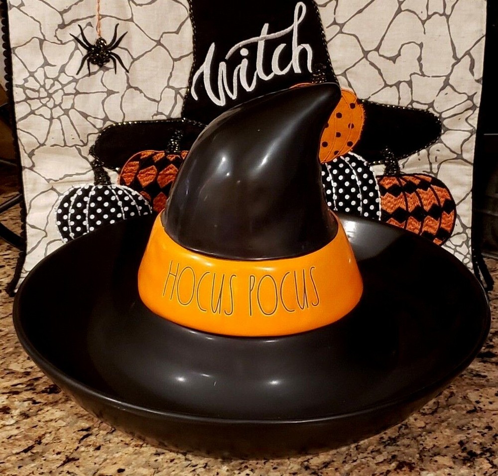 BRAND NEW - UNUSED - FAST SHIP RAE DUNN ARTISAN COLLECTION: Halloween ceramic serving tray "HOCUS POCUS Black witch hat with orange stripe chips and dip server décor Size: 13"L x 10.5"H Add a Spooktacular look to your kitchen table décor with this ghoulish server PLEASE CHECK OUT MY OTHER LISTINGS FOR MORE EXCITING ITEMS!!! All my items come from a smoke free pet free home. ******PLEASE ASK QUESTIONS OF CONCERNS BEFORE PURCHASE****** ****** AS RETURNS ARE NOT ACCEPTED-TY***** PLEASE be patient with USPS postal deliveries as there seems to be massive delays in packages ARRIVING on time. I do my very best to package and ship within 24 hours of payment received, in some cases ship the same day if early morning purchase. THANK YOU for looking!!! NO INTERNATIONAL SHIP