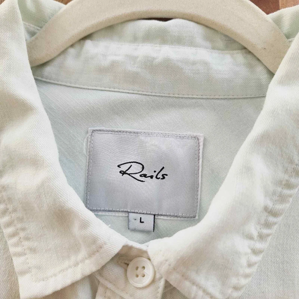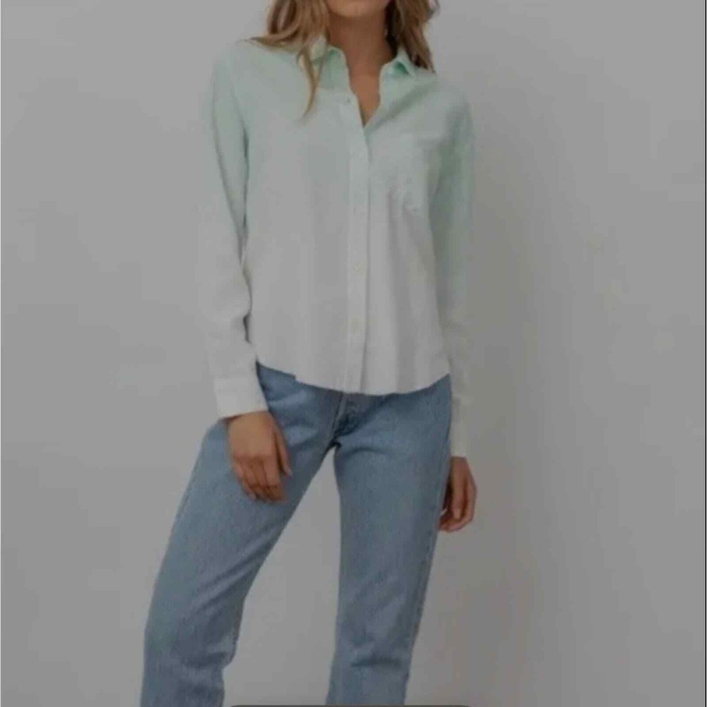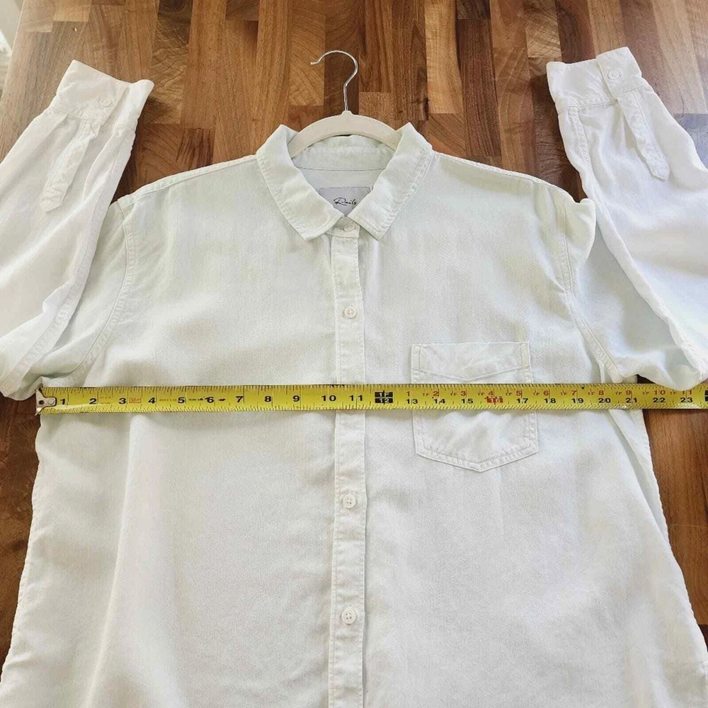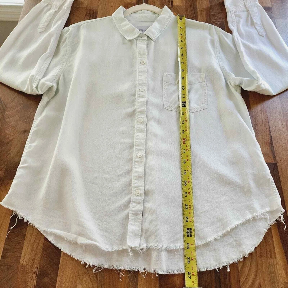 <![CDATA[<div>Good condition. This dip dye collared shirt is a modern wardrobe staple that's sure to get tons of compliments. Point collar. Long sleeves with button cuffs. Front button closure. Chest patch pocket. Curved hem. 70% Tencel, 15% linen, 15% ramie. Machine wash, tumble dry. Imported. Size: Large. Please check photos for details and measurements. tags: linen, coastal grandma, spring, summer, casual, Smoke & pet free home BUNDLE & SAVE MORE