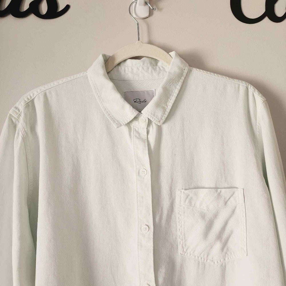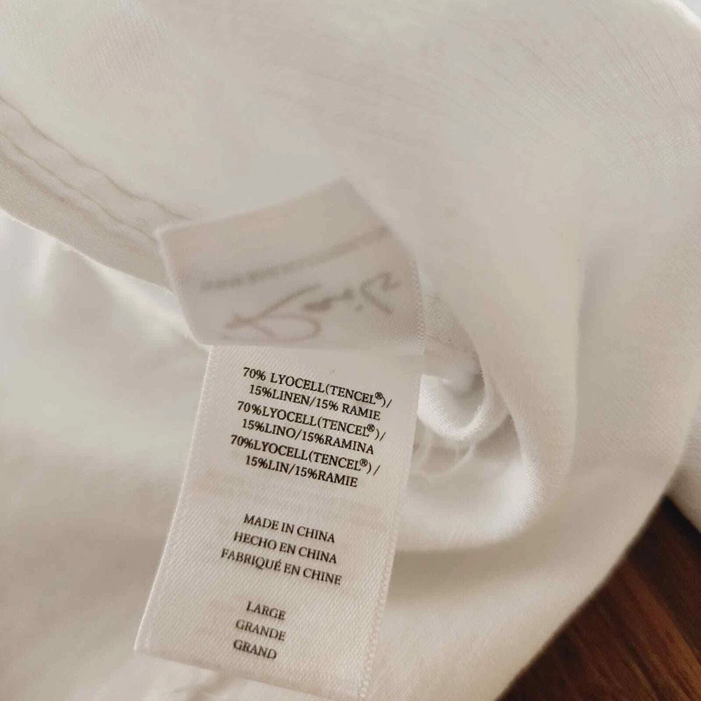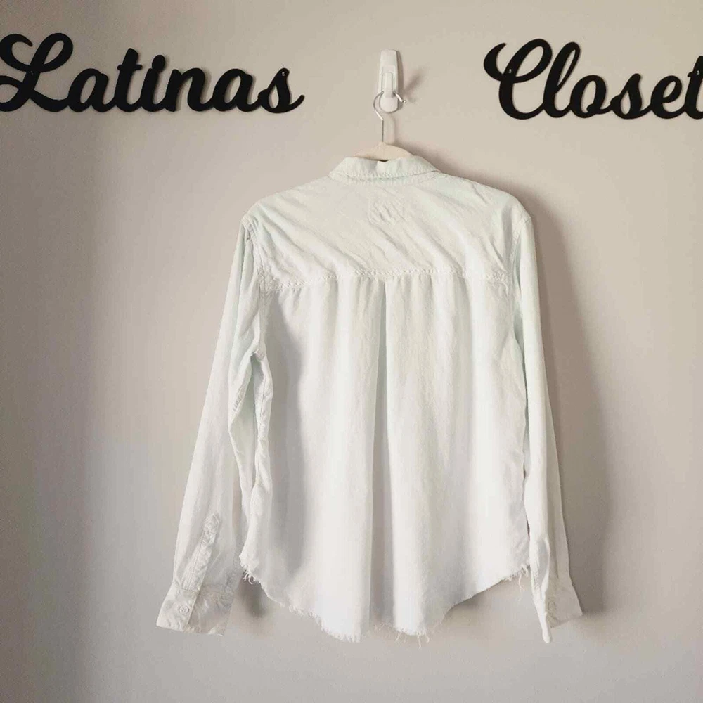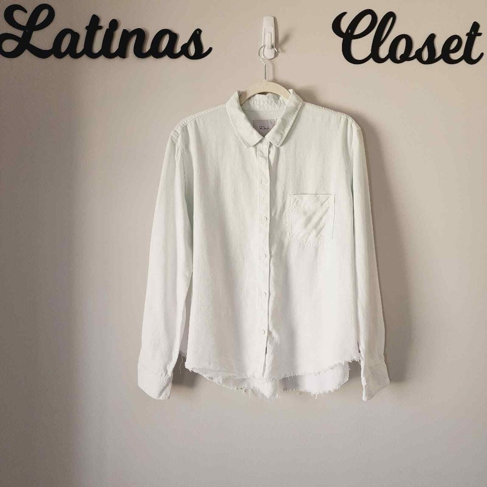 <![CDATA[<div>Good condition. This dip dye collared shirt is a modern wardrobe staple that's sure to get tons of compliments. Point collar. Long sleeves with button cuffs. Front button closure. Chest patch pocket. Curved hem. 70% Tencel, 15% linen, 15% ramie. Machine wash, tumble dry. Imported. Size: Large. Please check photos for details and measurements. tags: linen, coastal grandma, spring, summer, casual, Smoke & pet free home BUNDLE & SAVE MORE