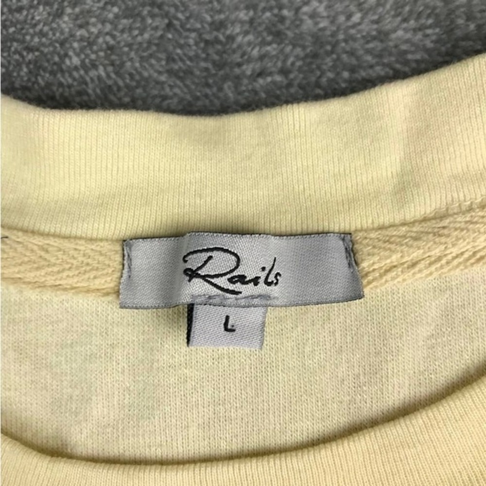 This is a pre-loved Rails sweatshirt in great condition. It has a beautiful ombre effect from yellow to light blue. Please see the photos for measurements. Comes from smoke free home. From Rails website: This fashion forward pullover sweatshirt is perfect for relaxing at home or going about your day in the most comfortable fashion. Made from super soft lounge terry, this sweatshirt features a pastel sky blue and lemon yellow dip dye design throughout. 40% Cotton | 40% Rayon | 20% Polyester