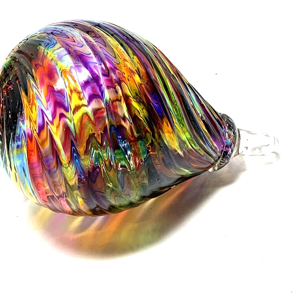 Absolutely love this ornament! The vibrant rainbow swirls catch the light beautifully, adding a playful pop of color to the tree. It’s delicate yet well-crafted, with the hand-blown glass giving it a unique, artful charm. Perfect for brightening up holiday decor or gifting to someone who loves cheerful accents. A festive little treasure!