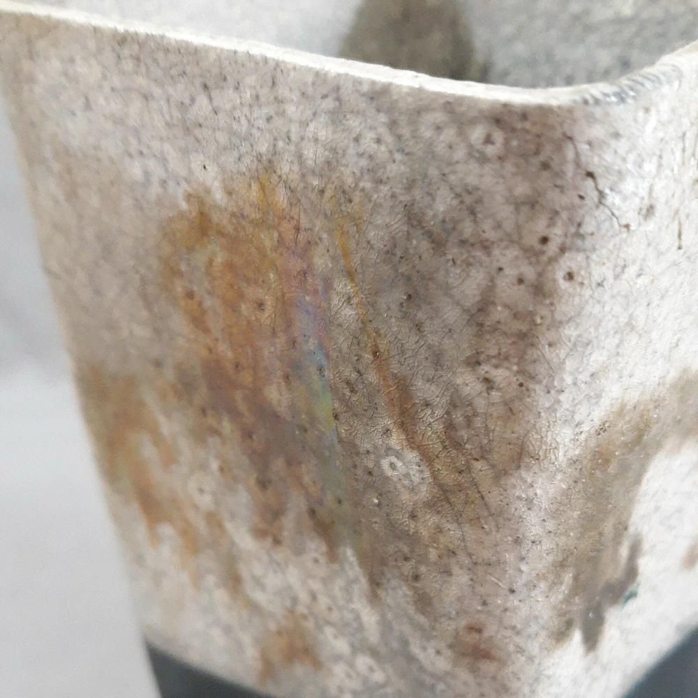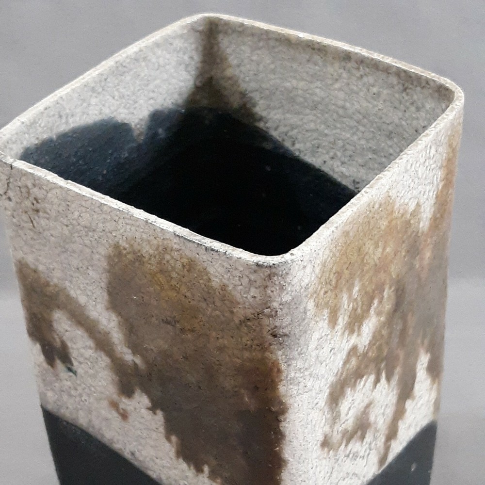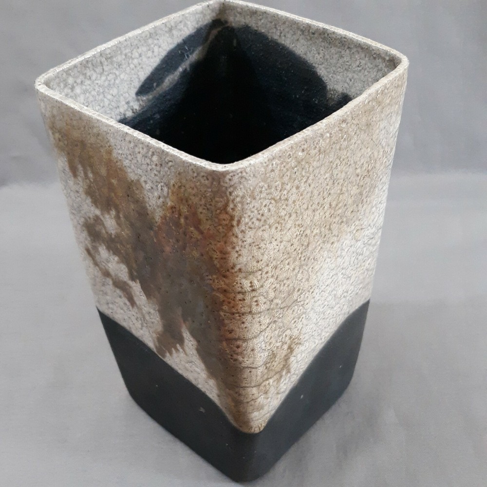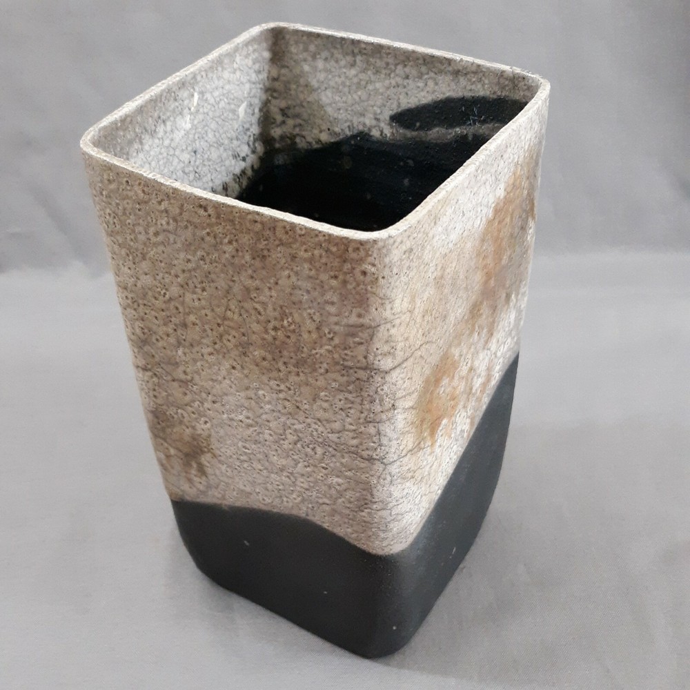 Raku Pottery art studio square vase with ivory, brown,and black crackle glazes. Bubbled texture compliments the 6 3/8" x 3.25" vase. No chips or cracks. Signed by artist. Payment is due within four days following the end of the auction. International Buyers: Prices are in US dollars. You are responsible for payment of extra fees, taxes. Shipping is only within the contiguous United States thru USPS. Combined MUST be requested before checkout. A corrected invoice will be emailed to you, with payment to follow. RETURNS AND REFUNDS There's a 30 day return policy for the following: The item doesn't match the description or photos in the listing, or the wrong item was sent. Buyer pays the return postage. NO RETURNS of merchandise/products damaged in shipping. All refunds will be for the items purchase price. Thanks!