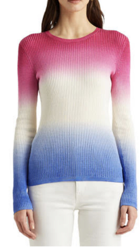 This long-sleeve ribbed sweater is updated for the season in a vibrant dip-dyed motif for a colorful gradient effect. Product Details Ribbed crew neck Long sleeves Sleeve length changes 0.5 in between sizes Ribbed hem Slim fit Intended to hit at the hip Imported Product Specifications Model is 5 ft 10 in/178 cm and wears a size small Size medium has a 23 in body length and a 23.75 in