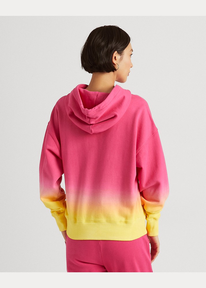 This hoodie is a total game-changer! The dip-dyed colors are stunning—like wearing a sunset. The French terry is super soft and cozy, perfect for all-day wear. Love the relaxed fit, adjustable hood, and ribbed details for extra style. The Ralph Lauren quality is top-notch, and the print adds a cool touch. Super comfy, stylish, and worth every penny!