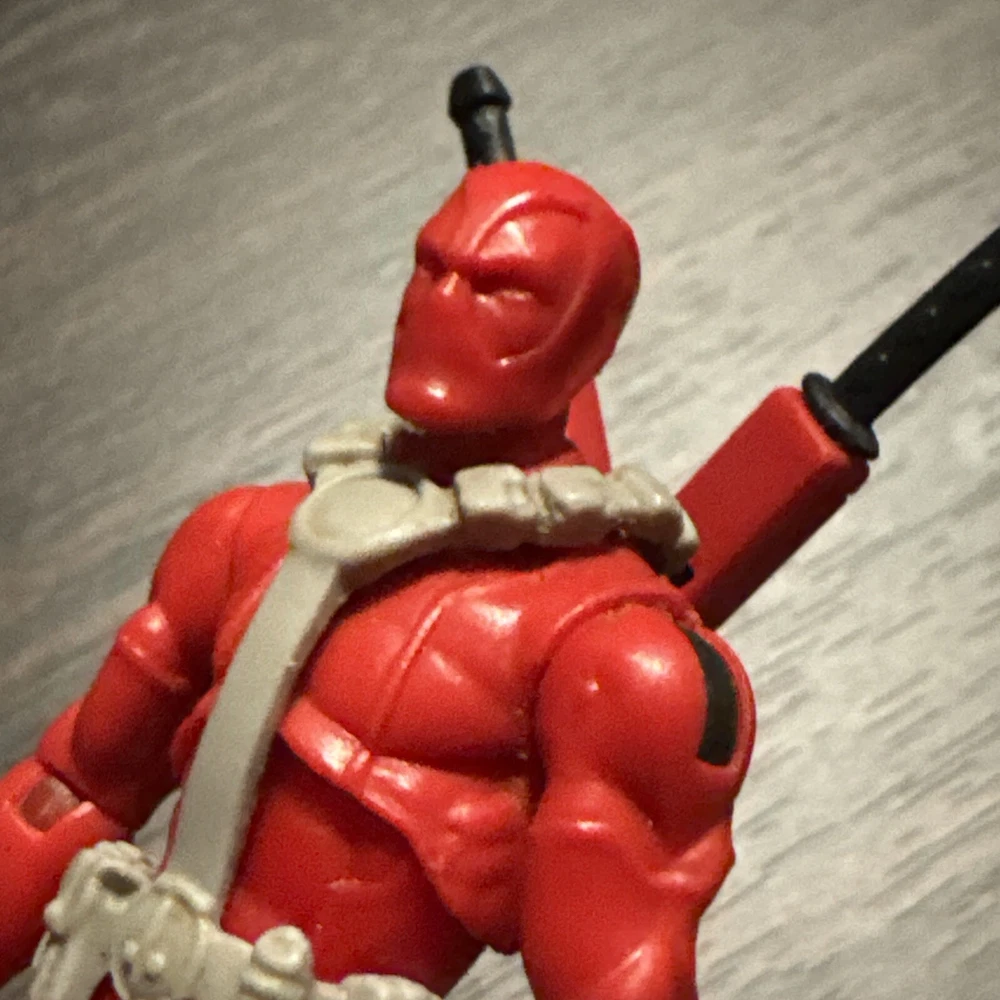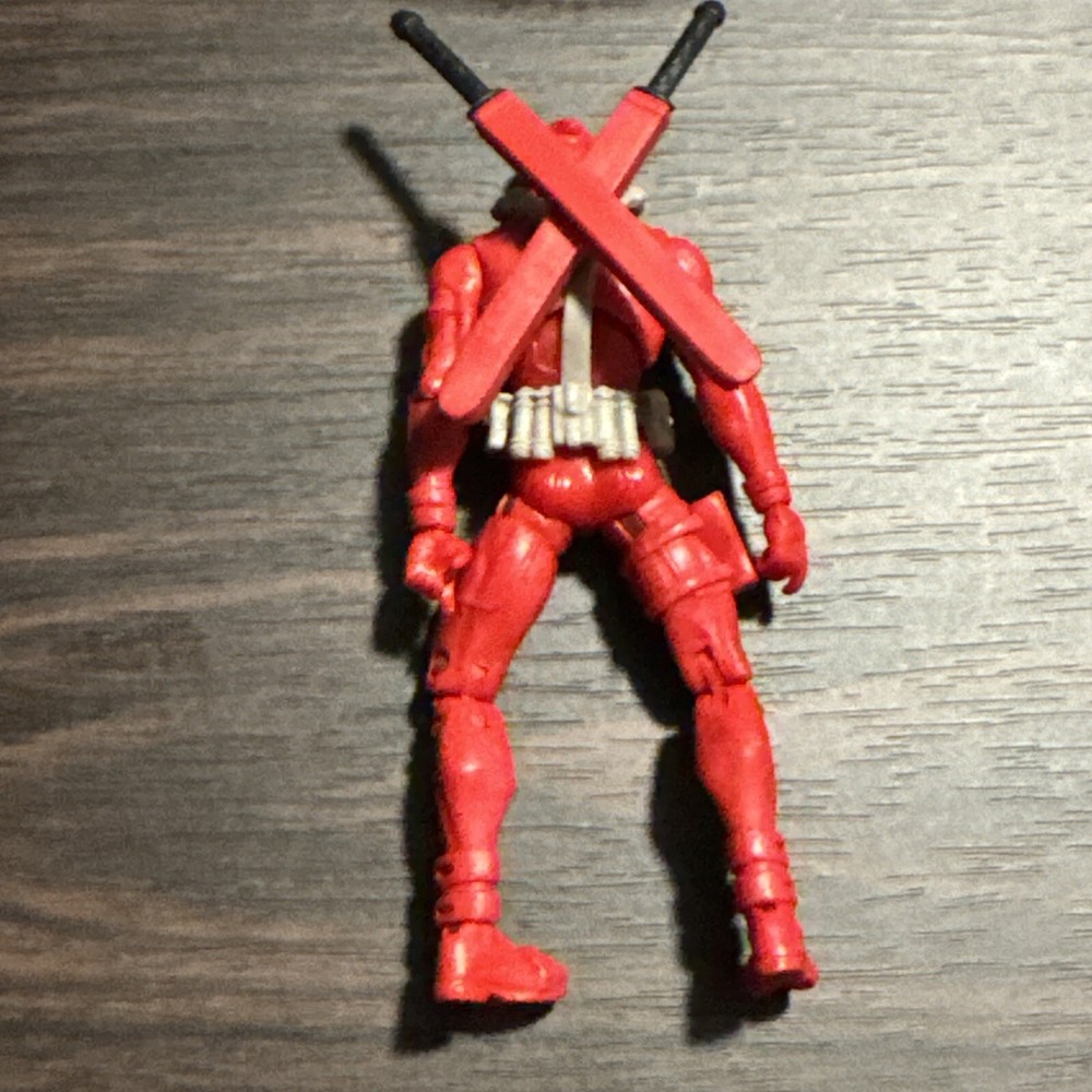 Rare 2009 Deadpool Comic Series X-Men Origins Wolverine 3.75" prototype B3 on crotch As pictured with 2 swords