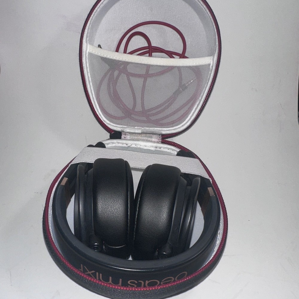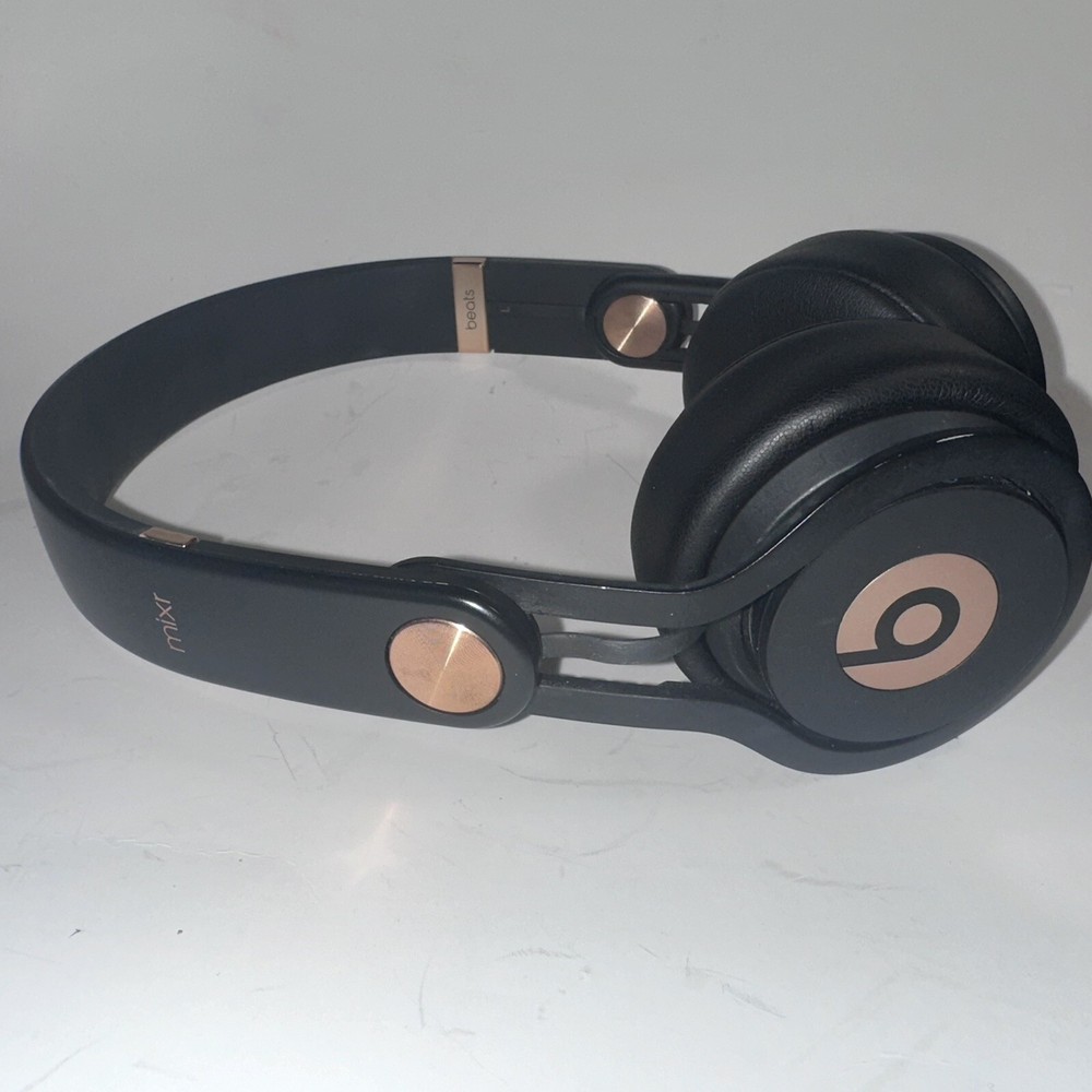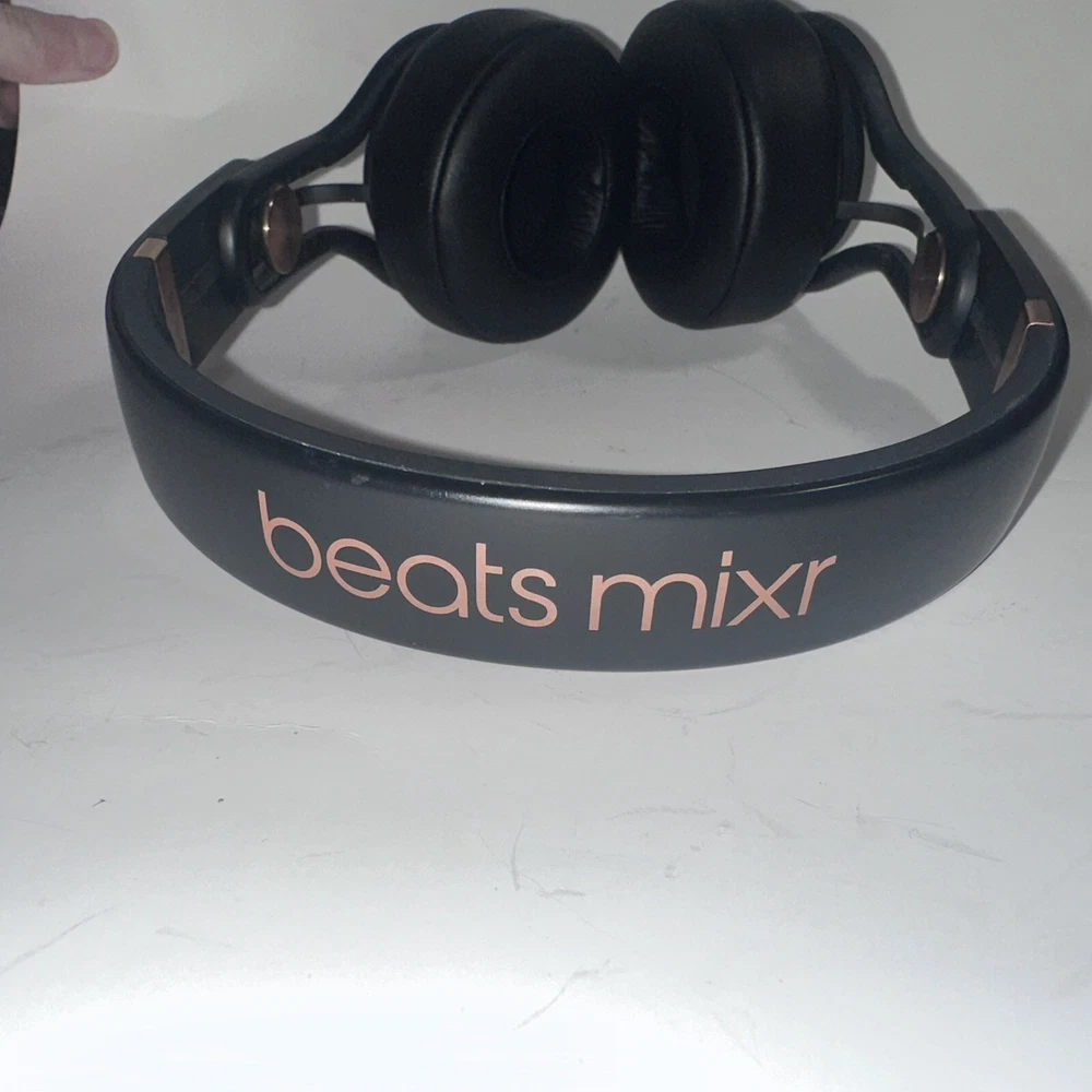 Tested and working great Nice used condition minor signs of wear (view pictures) Headphones, case and aux cord included Rare pair these are the only ones listed on eBay in this color way New ear pads Immerse yourself in the ultimate sound experience with these limited edition Beats by Dr. Dre Mixr Mixer Headphones. Designed with an adjustable headband, noise isolation, and a detachable 3.5mm jack, these headphones are perfect for studio monitoring, DJing, and live monitoring. The black and rose gold color scheme adds a touch of luxury to your audio setup. Experience the rich, deep bass and crystal clear treble with these ear-pad, on-the-ear headphones. The L-shape plug and in-line control make it easy to adjust volume and settings without interrupting your session. With surround sound capabilities and a comfortable fit, these headphones are the perfect addition to any audio professional's toolkit.