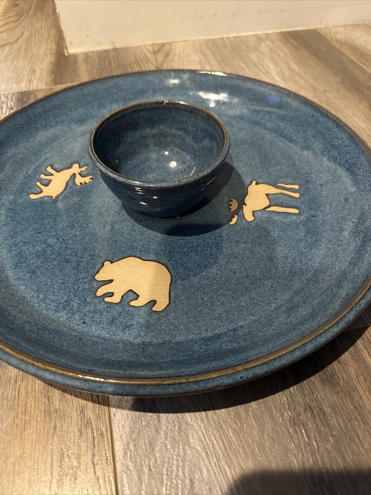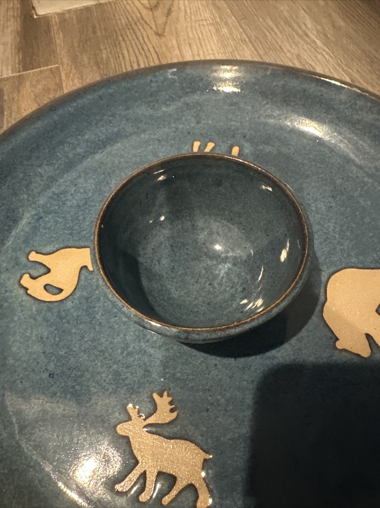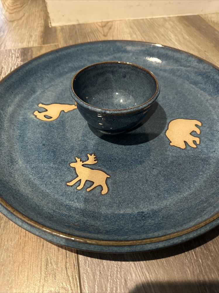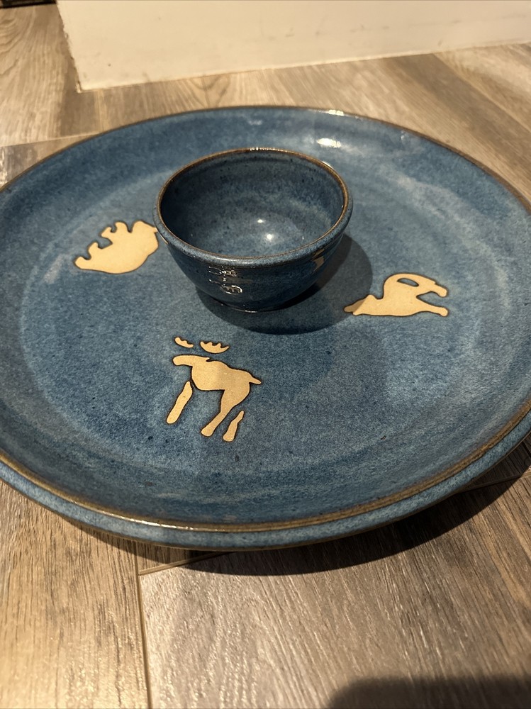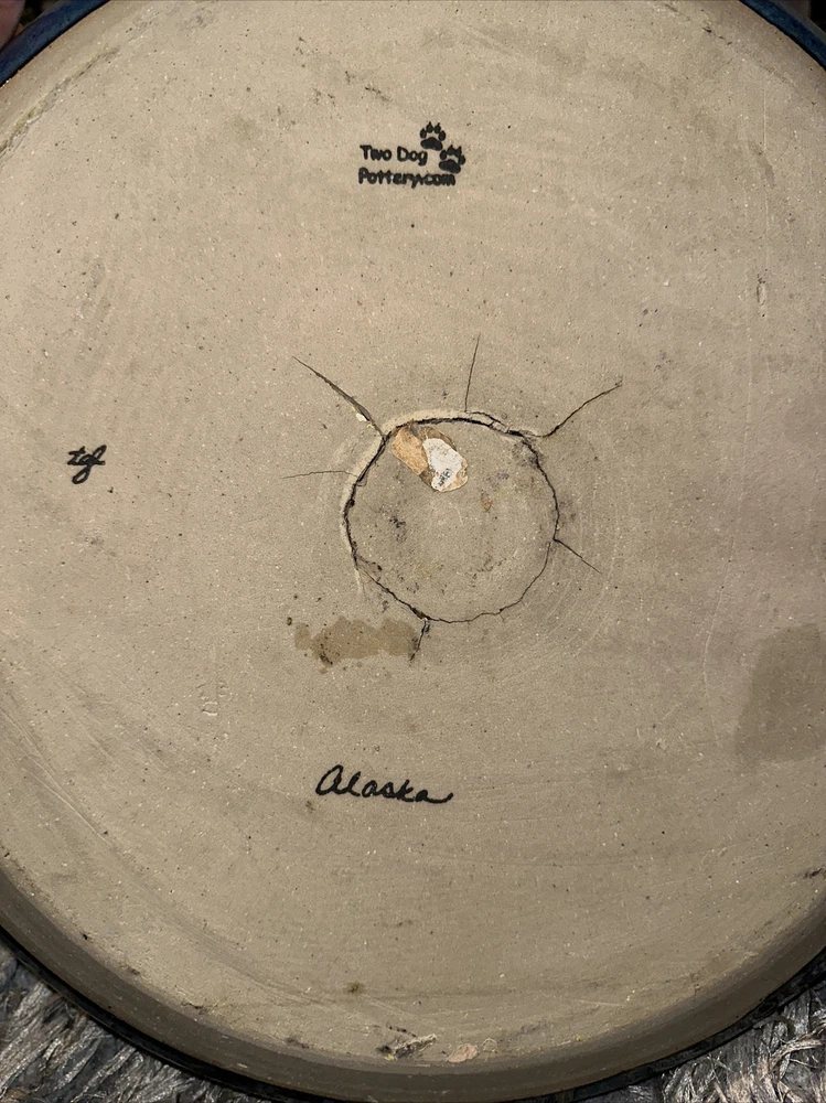 Handmade Pottery Moose Large By Two Dog Pottery, Alaska. Please look at pictures imperfections on the bottom Which shows cracks on the outside only...