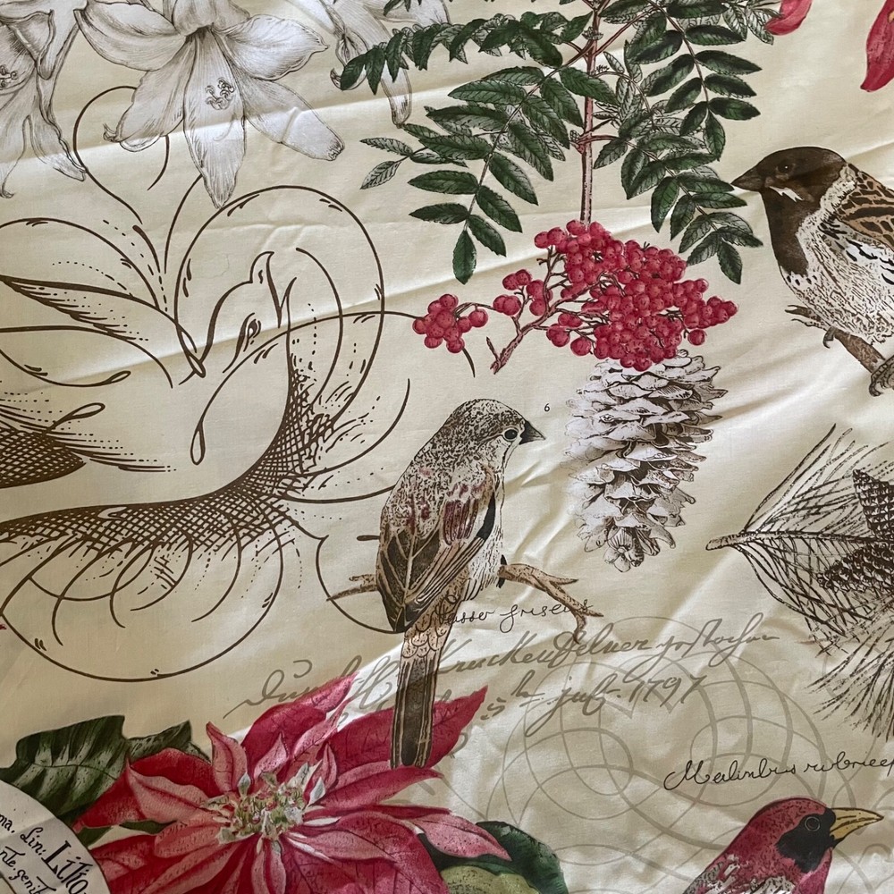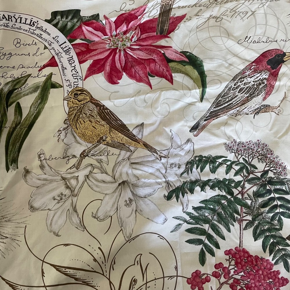 Gorgeous botanical winter bird duvet cover by Pottery Barn. Beautiful birds, poinsettias, pine cones, scrips and other florals. Very rare.