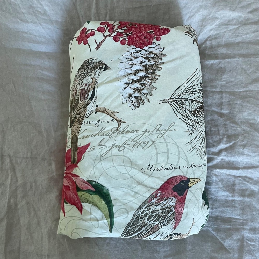 Gorgeous botanical winter bird duvet cover by Pottery Barn. Beautiful birds, poinsettias, pine cones, scrips and other florals. Very rare....