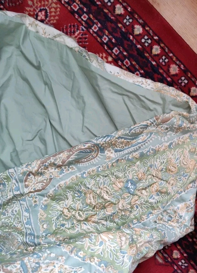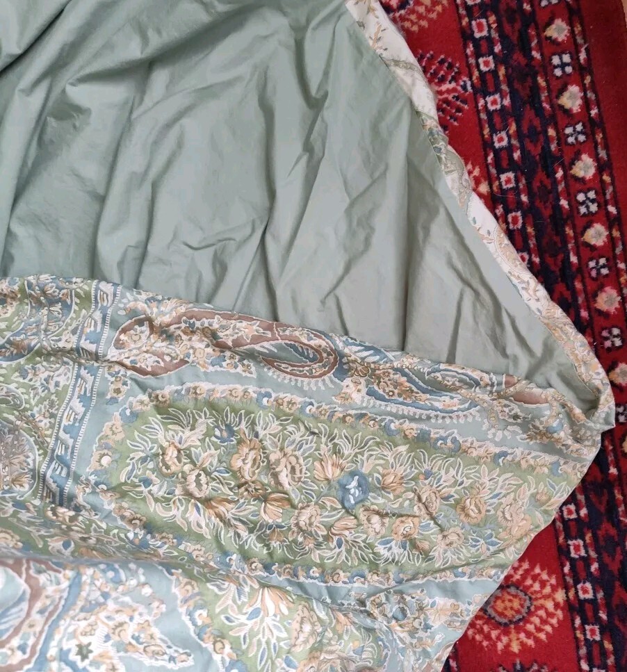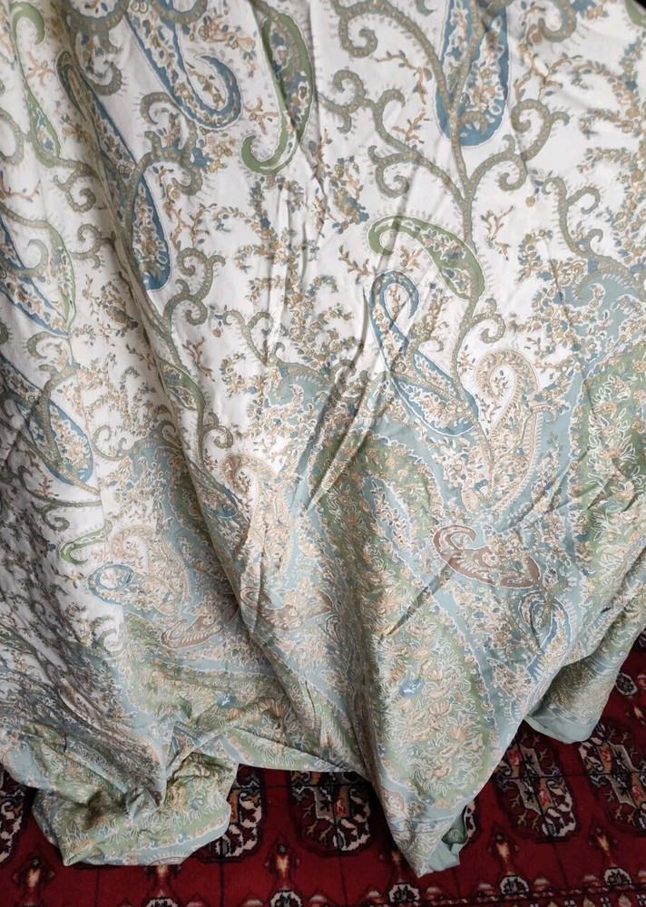 This is a rare Pottery Barn Sienna Paisley Full/Queen Duvet Cover featuring a reversible design with paisley pattern in blue, green, and multicolor, which reverses to plain solid green. Made of 100% cotton, this duvet cover is machine washable and perfect for the bedroom. No flaws found. May have slightly faded overall. Super soft. Please ask any questions before purchasing. Thanks for looking!