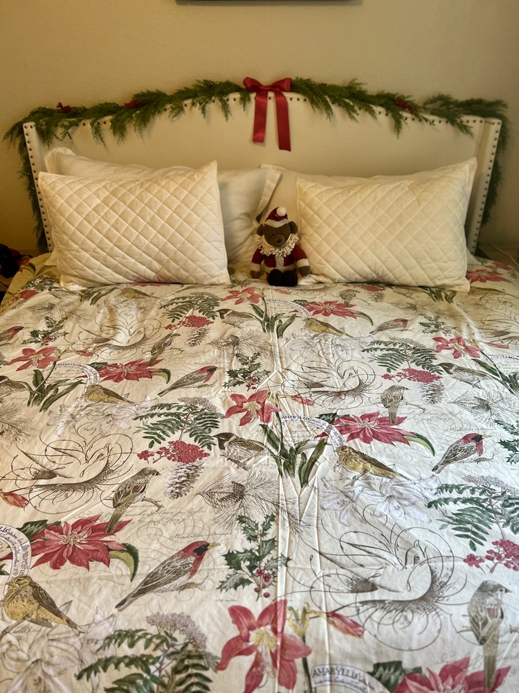 ~Rare ~Retired Pottery Barn stunning winter birds and botanicals Queen size Duvet ~Excellent condition, crisp clean cotton ~From a nonsmoking, animal free home ~Stored with care