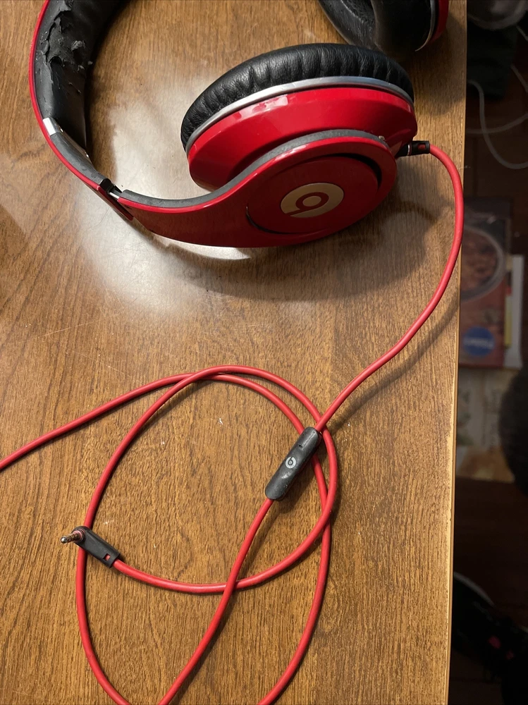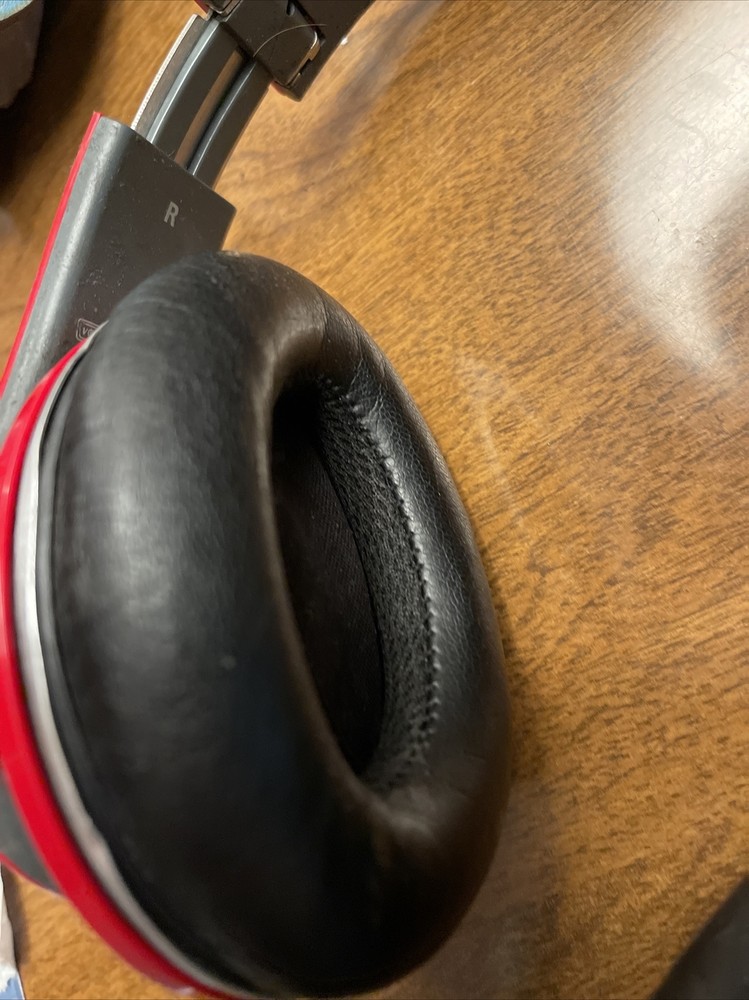 Headband part is torn and sticky. Would need replacing. Get your hands on these rare vintage Beats by Dr. Dre Monster Solo HD headphones in a striking red color. These headphones are perfect for studio monitoring, DJing, and live monitoring. They feature an adjustable headband, replaceable earpads, and a detachable cable for easy storage and customization. With active noise cancellation and surround sound, these headphones deliver crystal-clear audio quality. They have a wired connectivity and an L-shape plug for added convenience. Whether you're a music enthusiast or a professional DJ, these headphones are sure to impress.