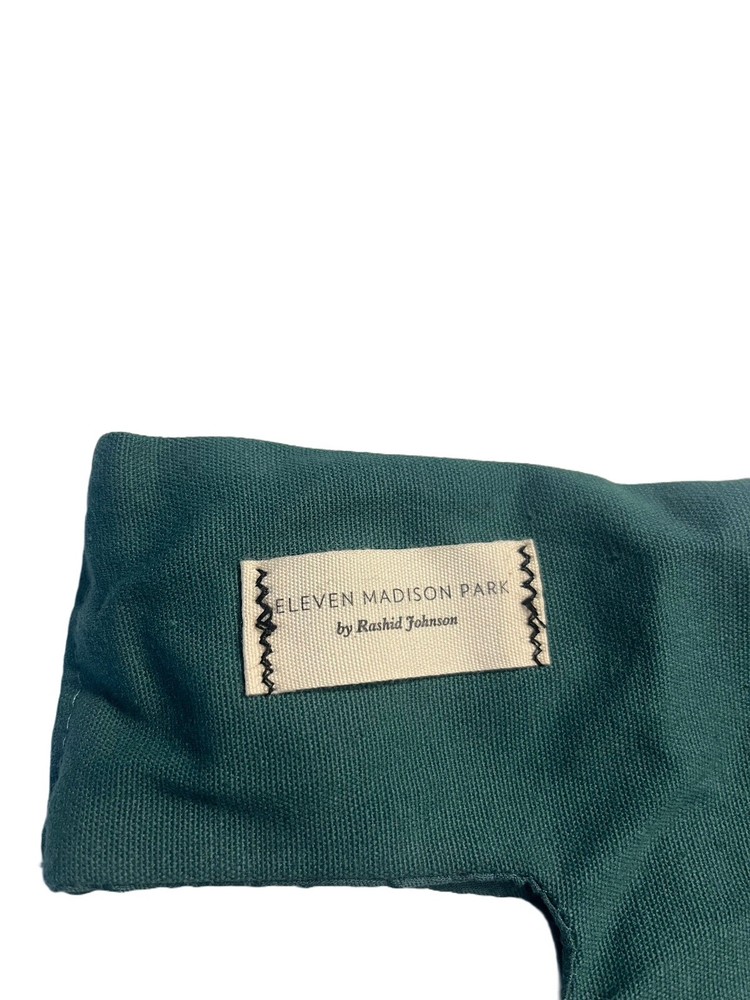 Rashid Johnson Eleven Madison Park NY Restaurant Canvas Carrier small tote bag Green Screenprinted design by American conceptual artist Rashid Johnson. 10.5" total length, 6" width flat , 3.75" diamet...