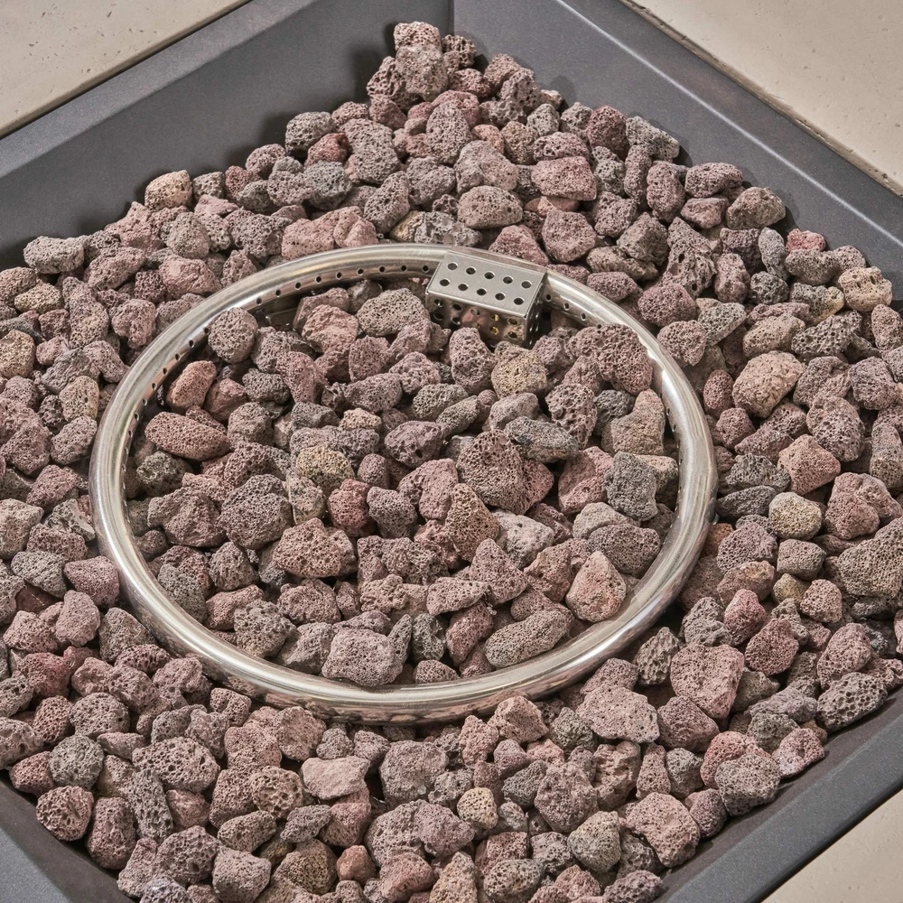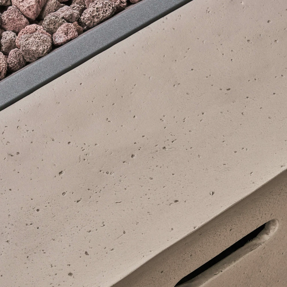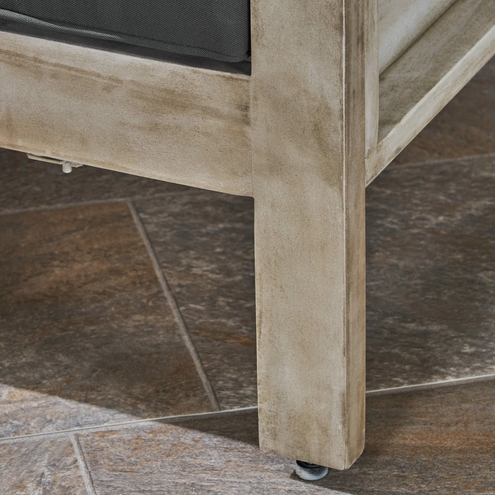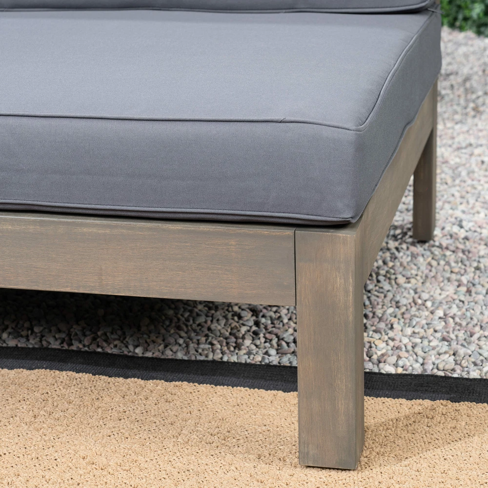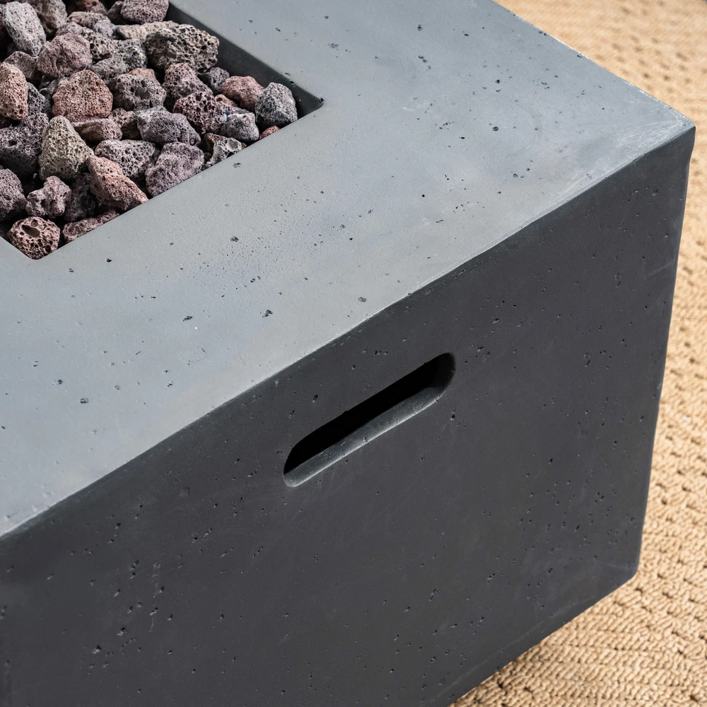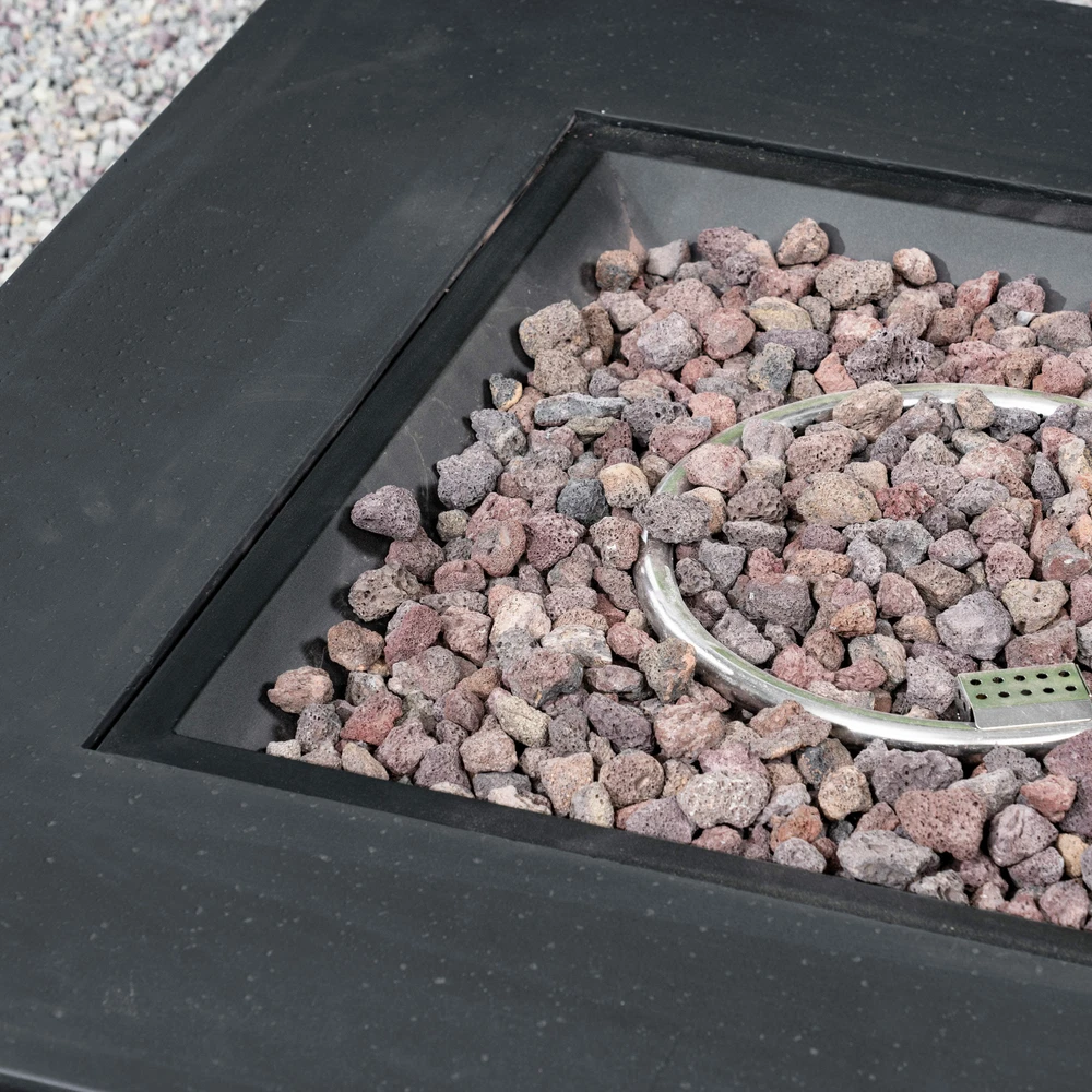 Keep your loved ones warm and toasty long after the sun has gone down. This modular L-shaped sectional sofa set not only offers generous seating space for every guest but it also features an exquisitely modern square fire pit for an extra boost of comfort. With naturally durable acacia wood frames and water-resistant cushions, this set is the perfect centerpiece to bring out good company and even better conversations all summer long. ACACIA WOOD: Our sofa set is made with acacia wood that brings a sleek yet natural look to your space. Perfect for resisting normal wear and tear, this durable hardwood maintains a sturdy foundation that can withstand most outdoor elements and will not darken over time. WATER-RESISTANT CUSHIONS: Our cushions are covered with a non-porous material that makes cleaning any spills a breeze. The seat cushion includes hook and loop fasteners to ensure that you can spend all summer lounging outdoors in comfort. Please note that these cushions are water-resistant and not waterproof. Please do not submerge in water. FIREPIT WITH TANK HOLDER: This fire pit is constructed with lightweight concrete for a minimalistic yet modern vibe. The shape allows easy seating arrangement for you and your guests, providing light and warmth all around during those chilly evenings. This comes with a matching tank holder to keep your propane tank inconspicuous. ASSEMBLY REQUIRED: Some assembly is required for this chat set. All of the instructions and tools needed for assembly are included. No assembly is required for this fire pit. Simply place the lava rocks in the pit without covering the burner, and then plug in your standard size propane tank and enjoy your fire pit. SET INCLUDES: This set includes one right-arm piece, one left-arm piece, two armless pieces, one corner piece, one fire pit, and one tank holder. Includes: One (1) Right-Arm Piece, One (1) Left-Arm Piece, Two (2) Armless Pieces, One (1) Corner Piece, One (1) Fire Pit, One (1) Tank Holder Frame Material: Acacia Wood Cushion Material: Water-Resistant Fabric Fabric Composition: 100% Polyester Fire Pit and Tank Holder Material: Lightweight Concrete Frame Finish: Teak / Gray / Weathered Gray Cushion Color: Optional Fire Pit and Tank Holder Color: Light Gray / Dark Gray Hand-Crafted Details Some Assembly Required Right-Arm Piece Dimensions: 30.25 inches deep x 30.25 inches wide x 26.50 inches high Right-Arm Piece Seat Dimensions: 28.00 inches deep x 28.00 inches wide x 10.25 inches high Right-Arm Piece Arm Height: 26.50 inches Left-Arm Piece Dimensions: 30.25 inches deep x 30.25 inches wide x 26.50 inches high Left-Arm Piece Seat Dimensions: 28.00 inches deep x 28.00 inches wide x 10.25 inches high Left-Arm Piece Arm Height: 26.50 inches Armless Piece Dimensions: 30.25 inches deep x 28.00 inches wide x 26.50 inches high Armless Piece Seat Dimensions: 28.00 inches deep x 28.00 inches wide x 10.25 inches high Corner Piece Dimensions: 30.25 inches deep x 30.25 inches wide x 26.50 inches high Corner Piece Seat Dimensions: 28.00 inches deep x 28.00 inches wide x 10.25 inches high Corner Piece Arm Height: 26.50 inches Fire Pit Dimensions: 40.00 inches deep x 40.00 inches wide x 12.50 inches high Tank Holder Dimensions: 16.25 inches deep x 16.25 inches wide x 20.25 inches high ~~~-1" ~~~