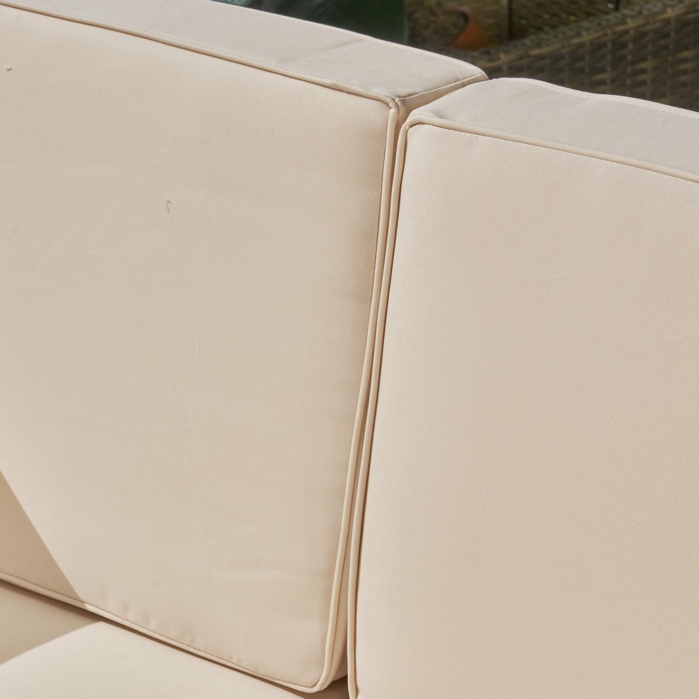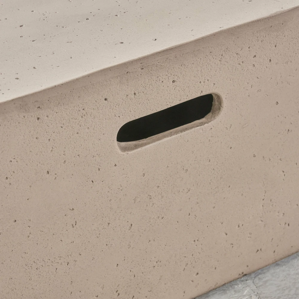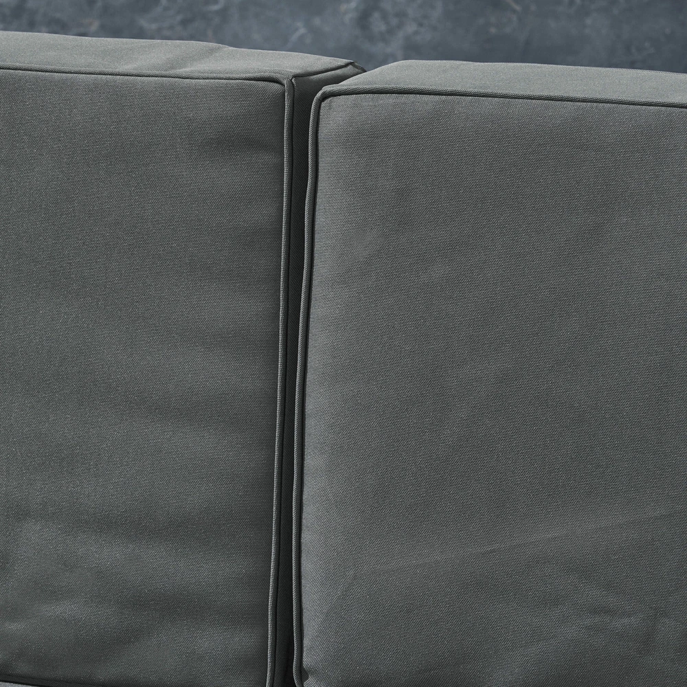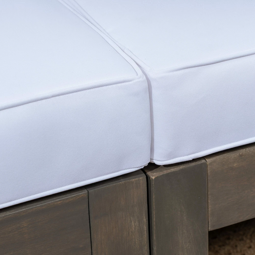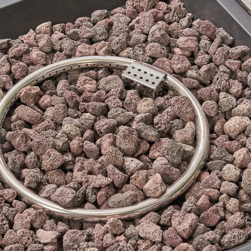Keep your loved ones warm and toasty long after the sun has gone down. This modular L-shaped sectional sofa set not only offers generous seating space for every guest but it also features an exquisitely modern square fire pit for an extra boost of comfort. With naturally durable acacia wood frames and water-resistant cushions, this set is the perfect centerpiece to bring out good company and even better conversations all summer long. ACACIA WOOD: Our sofa set is made with acacia wood that brings a sleek yet natural look to your space. Perfect for resisting normal wear and tear, this durable hardwood maintains a sturdy foundation that can withstand most outdoor elements and will not darken over time. WATER-RESISTANT CUSHIONS: Our cushions are covered with a non-porous material that makes cleaning any spills a breeze. The seat cushion includes hook and loop fasteners to ensure that you can spend all summer lounging outdoors in comfort. Please note that these cushions are water-resistant and not waterproof. Please do not submerge in water. FIREPIT WITH TANK HOLDER: This fire pit is constructed with lightweight concrete for a minimalistic yet modern vibe. The shape allows easy seating arrangement for you and your guests, providing light and warmth all around during those chilly evenings. This comes with a matching tank holder to keep your propane tank inconspicuous. ASSEMBLY REQUIRED: Some assembly is required for this chat set. All of the instructions and tools needed for assembly are included. No assembly is required for this fire pit. Simply place the lava rocks in the pit without covering the burner, and then plug in your standard size propane tank and enjoy your fire pit. SET INCLUDES: This set includes one right-arm piece, one left-arm piece, two armless pieces, one corner piece, one fire pit, and one tank holder. Includes: One (1) Right-Arm Piece, One (1) Left-Arm Piece, Two (2) Armless Pieces, One (1) Corner Piece, One (1) Fire Pit, One (1) Tank Holder Frame Material: Acacia Wood Cushion Material: Water-Resistant Fabric Fabric Composition: 100% Polyester Fire Pit and Tank Holder Material: Lightweight Concrete Frame Finish: Teak / Gray / Weathered Gray Cushion Color: Optional Fire Pit and Tank Holder Color: Light Gray / Dark Gray Hand-Crafted Details Some Assembly Required Right-Arm Piece Dimensions: 30.25 inches deep x 30.25 inches wide x 26.50 inches high Right-Arm Piece Seat Dimensions: 28.00 inches deep x 28.00 inches wide x 10.25 inches high Right-Arm Piece Arm Height: 26.50 inches Left-Arm Piece Dimensions: 30.25 inches deep x 30.25 inches wide x 26.50 inches high Left-Arm Piece Seat Dimensions: 28.00 inches deep x 28.00 inches wide x 10.25 inches high Left-Arm Piece Arm Height: 26.50 inches Armless Piece Dimensions: 30.25 inches deep x 28.00 inches wide x 26.50 inches high Armless Piece Seat Dimensions: 28.00 inches deep x 28.00 inches wide x 10.25 inches high Corner Piece Dimensions: 30.25 inches deep x 30.25 inches wide x 26.50 inches high Corner Piece Seat Dimensions: 28.00 inches deep x 28.00 inches wide x 10.25 inches high Corner Piece Arm Height: 26.50 inches Fire Pit Dimensions: 40.00 inches deep x 40.00 inches wide x 12.50 inches high Tank Holder Dimensions: 16.25 inches deep x 16.25 inches wide x 20.25 inches high ~~~-1" ~~~