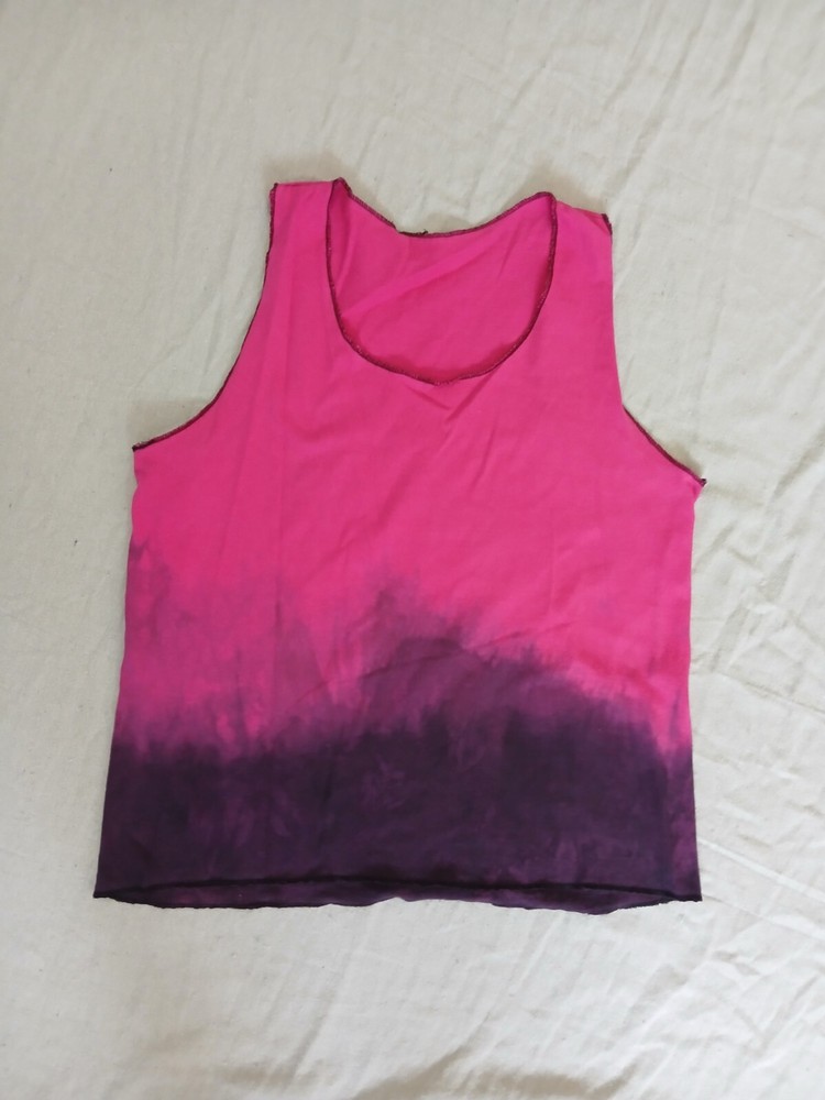 Raw Edge Racerback Tank Magenta Black O.bre Dip Dye Basics Layering Handmade Magenta racerback tank dip dyed balck ombre 100% cotton, raw edge minimal flat hem Measures 20" shoulder to hem, 40" bust H...