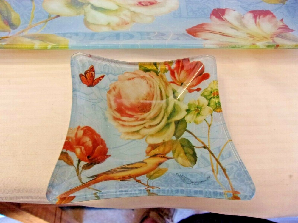 Very good condition Rectangular Glass Platter and Dip Bowl Floral Pattern by Lisa Audit No chips or cracks Measures 15.75" x 11.75" x 1" deep Square bowl measures 5" square x 1.5' deep Actual Item is pictured I do accept reasonable offers, so feel free to make me an offer. Please look at the other great items in my store. Thanks for visiting. INTERNATIONAL BUYERS: Please note that import duties, taxes and charges are not included in the item price or shipping charges. These charges are the buyer's responsibility. Please check with your country's customs office to determine what these additional costs will be prior to bidding or buying. These charges are normally collected by the delivering freight or shipping company or when you pick up the item. Do not confuse them for additional shipping charges. I do not mark merchandise values below value or mark items as gifts. U.S. and International government regulations prohibit such behavior.