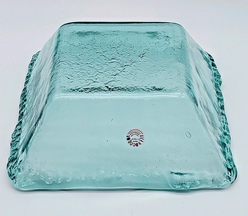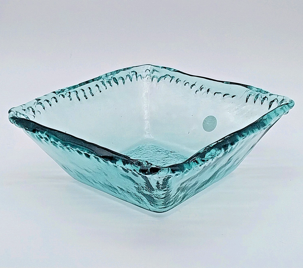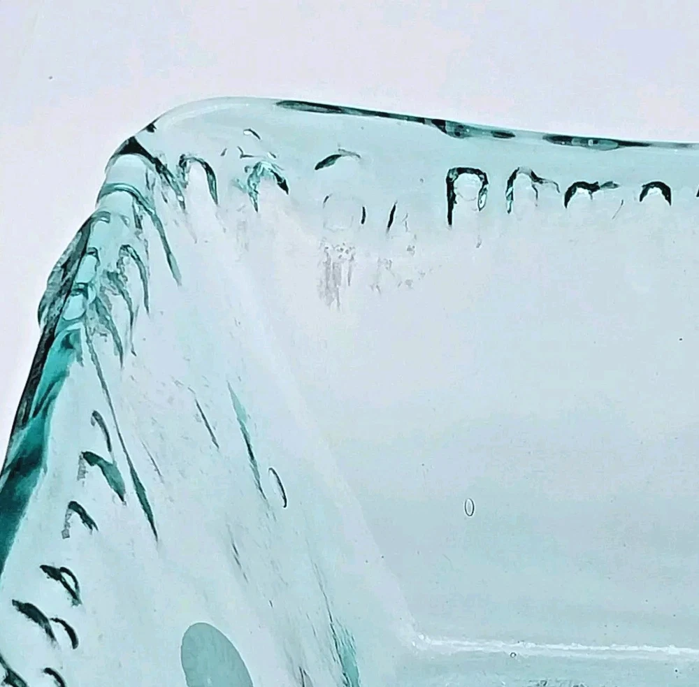 Love this gorgeous aqua-blue bowl—thick, high-quality glass with a beautiful recycled texture. It has a couple of tiny rough spots, but they’re barely noticeable and don’t take away from the stunning color and craftsmanship. Perfect for serving or displaying!
