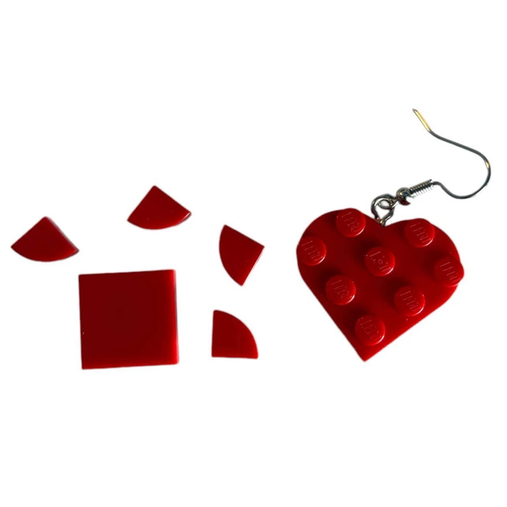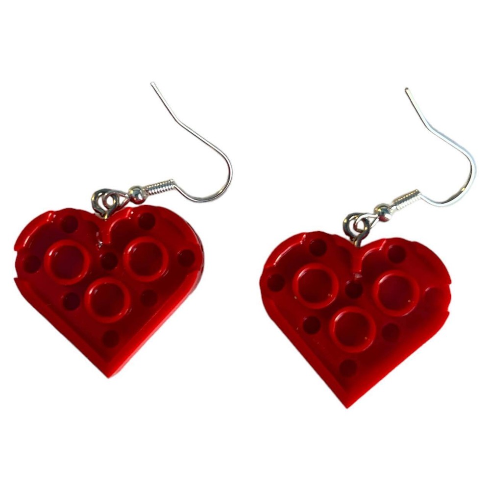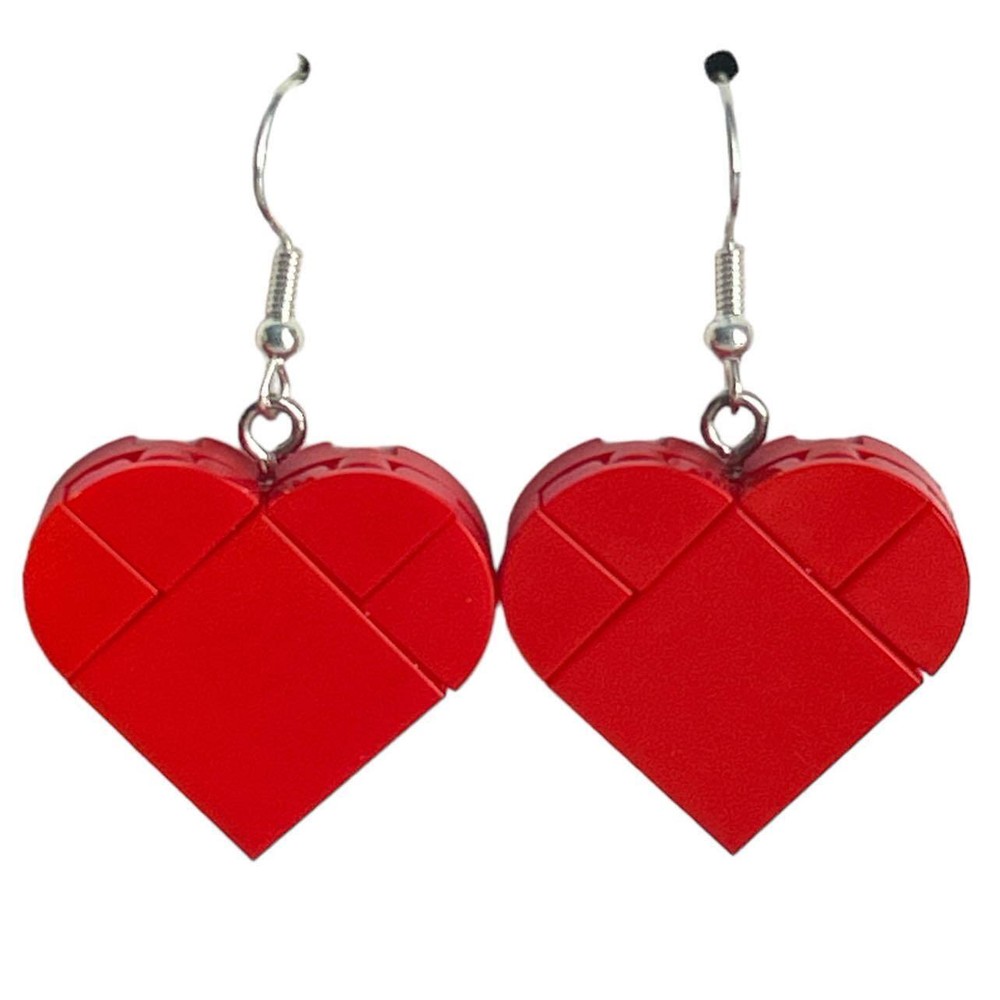 Red Heart Shaped Earrings made w/ Real LEGO pieces Fish Hook Dangle Earrings Description We specialize in unique and stylish handmade Jewelry using LEGO elements. This earrings are made with brand new heart shaped plates and 10 red tile pieces. Plates and tiles are 1/3 the thickness of a LEGO brick making the heart 2/3 the thickness of a lego brick. The heart is 1 inch wide. Great for any occasion for your LEGO Lover This is not an official LEGO Product. These are LEGO elements that have been repackaged or altered from their original form. LEGO is a trademark of the LEGO Group, which does not sponsor, authorize or endorse this product. The LEGO Group is not liable for any loss, injury or damage arising from the use or misuse of this product. Features Handcrafted in the USA using new LEGO pieces. Color: Silver Nickel Free Iron Store Policies Domestic Shipping All orders ship within 1-2 business days of completed payment. All orders placed on Friday, Saturday, and Sunday will ship on Mondays. Average delivery time to the USA is 3-5 business days. ***Delivery times are from date of shipment, and not date of purchase.*** International Shipping Average international delivery time is 7-25 days. Please also note that all items are shipped from the USA. The buyer is responsible for all customs duties, brokerage fees, and taxes, which are NOT included in the shipping costs. We will not label items as "gifts" or declare a lesser value for customs. Most orders arrive within 7-25 days. Some shipments can get delayed in customs and can take substantially longer than 25 days. We ask that you allow 30 days before contacting us regarding a lost or missing order. Some worldwide destinations can take exceptionally longer. ***Delivery times are from date of shipment, and not date of purchase.*** Payment The only form of payment accepted is Paypal. Returns Our primary goal is excellent customer service. We are happy to accept returns up to 7 days from confirmed delivery. If an item is defective, please contact us and we will provide a prepaid return label to you. We will happily ship a replacement item or issue a full refund, whichever you prefer. If you change your mind after receiving an item, we are happy to accept a return up to 7 days from confirmed delivery. Please note buyer is responsible for return shipping costs in these cases. If you change your mind prior to an item being shipped, please contact us and we will be happy to cancel the order and issue a full refund if the item is not already being processed for shipment. If you decide that you no longer wish to purchase an item and have not yet completed payment, please contact us and we will be happy to cancel your order. Please note that after a period of time with no payment, Ebay will automatically open an unpaid item case on our behalf. Once a case is open, we are unable to cancel your order. Additional Terms Your complete satisfaction is our goal. We aim to make every listing 100% accurate, but mistakes may happen from time to time. If an item is misrepresented in the listing, we will happily pay to have the item returned and offer a more accurate replacement or issue a full refund. From time to time, an order will be lost or misplaced by our shipping provider. Please note that we do not hold the buyer responsible for any item that cannot be confirmed as delivered by it’s respective tracking number. We will send a replacement item or give a refund once we have tried to track and trace the item through the United States Postal Service (if not buying from within the US, then your government postal service will be contacted.) About Us From humble beginnings in our founder’s bedroom, we have expanded to a multi-unit warehouse in Dover, Delaware. Friom our start, our priority has always been to achieve 100% customer satisfaction. Please do not hesitate to contact us with any questions or concerns.
