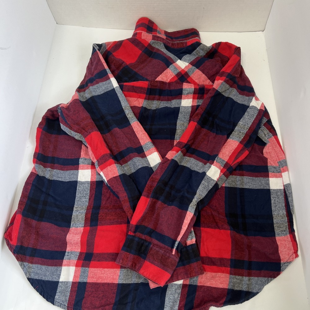 Red and Blue Long Sleeve Button Down Flannel Shirt. Condition is Pre-owned - Good. Shipped with USPS Ground Advantage.