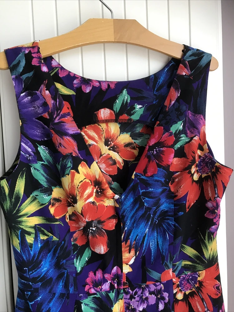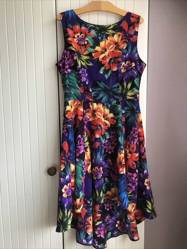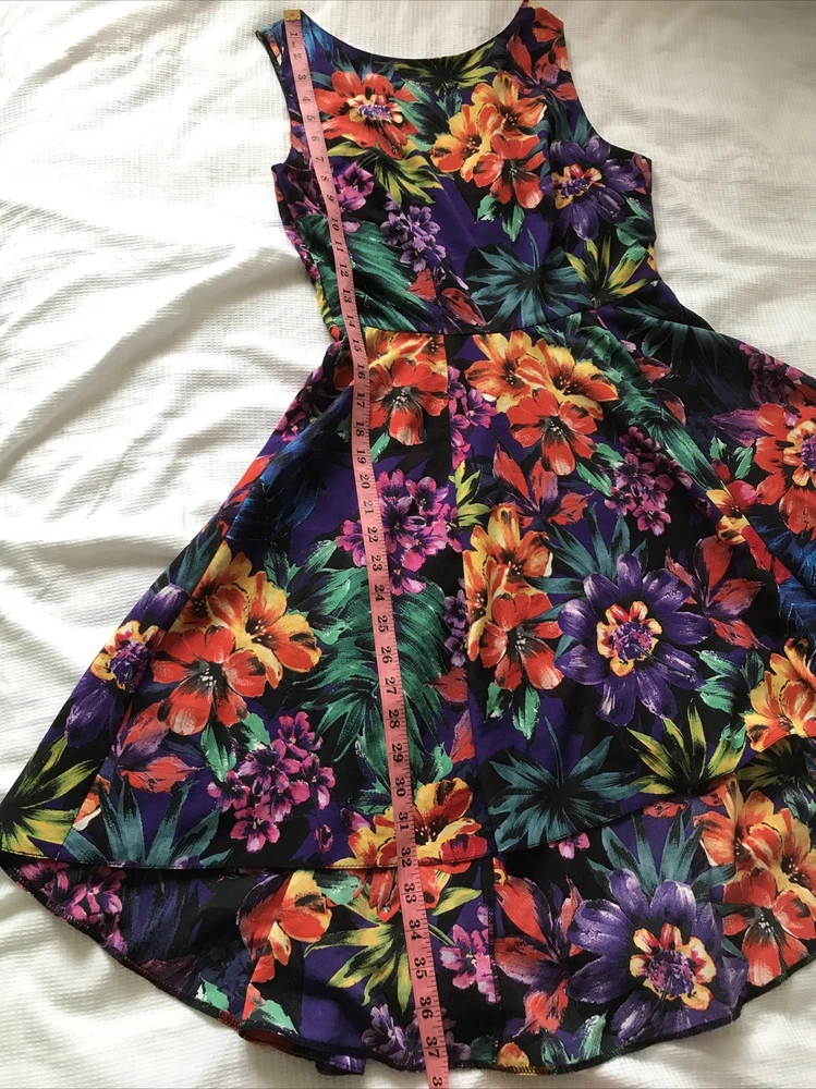 Redherring Large Floral Purple Short Dip Hem Dress Size 10 Sleeveless. Hem is longer at the back(see photo 3,4) Unlined, Lightweight. Good condition From pet free smoke free home Dispatched with Royal...
