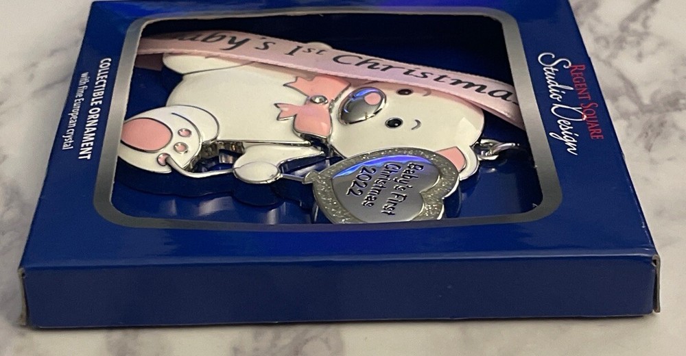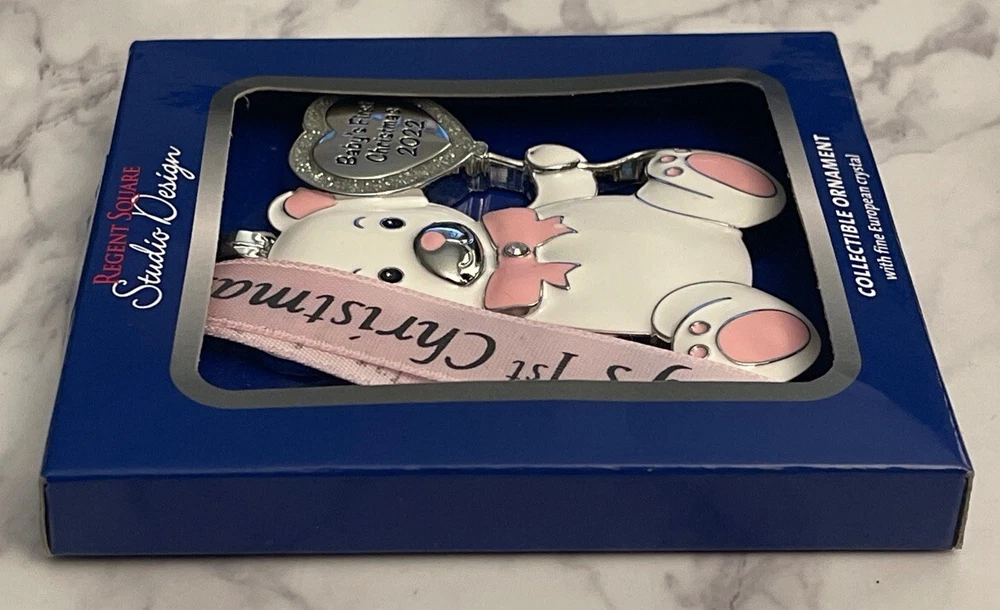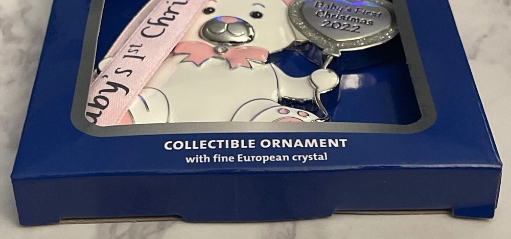 This auction is for the beautiful New in the box Baby's first Christmas ornament It would Make a nice gift or to add to your collection. Some photos may be enlarged to show detail. Size is in the picture. Please check out our full list for similar items. Condition is as seen in the pictures. I do not clean vintage items. Keep in mind that Antique, Vintage, or a previously owned item comes with normal wear. Please study the pictures closely before bidding or buying to make sure the condition of this item is acceptable to you. I am happy to combine shipping to save you money. Combined shipping welcome and is sent in a box with tracking. When purchasing Buy It Now, please proceed as follows: 1. Place items in cart. 2.Click on "View Cart". 3.Click on "Request Total". I will then send you a new invoice with combined shipping. I can not see what is in your cart. I Ship & List Monday - Friday. Questions are welcome. From a smoke free home. Check out my ebay store for more wonde rful items! There are a lot of items in the store! It may take some time but it is well worth it! Please mark me as a favorite seller and check back often. Thanks for looking and have a great day