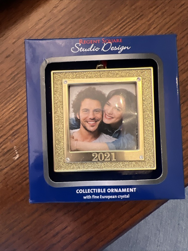Add a touch of elegance to your holiday decorations with this beautiful gold tone photo frame ornament from Regent Square Studio Design. The solid gold pattern and classic style make it a perfect addition to any collection, while the small size and square shape allow it to fit comfortably on any tabletop or shelf. Crafted from high-quality metal, this ornament is durable and built to last. It features an engraved design with a family at the holiday theme, making it a great unisex kids' gift for any occasion. Whether you're a collector or just looking for a unique decoration, this ornament is sure to bring joy to your home. See photos Item 0005 Box 3