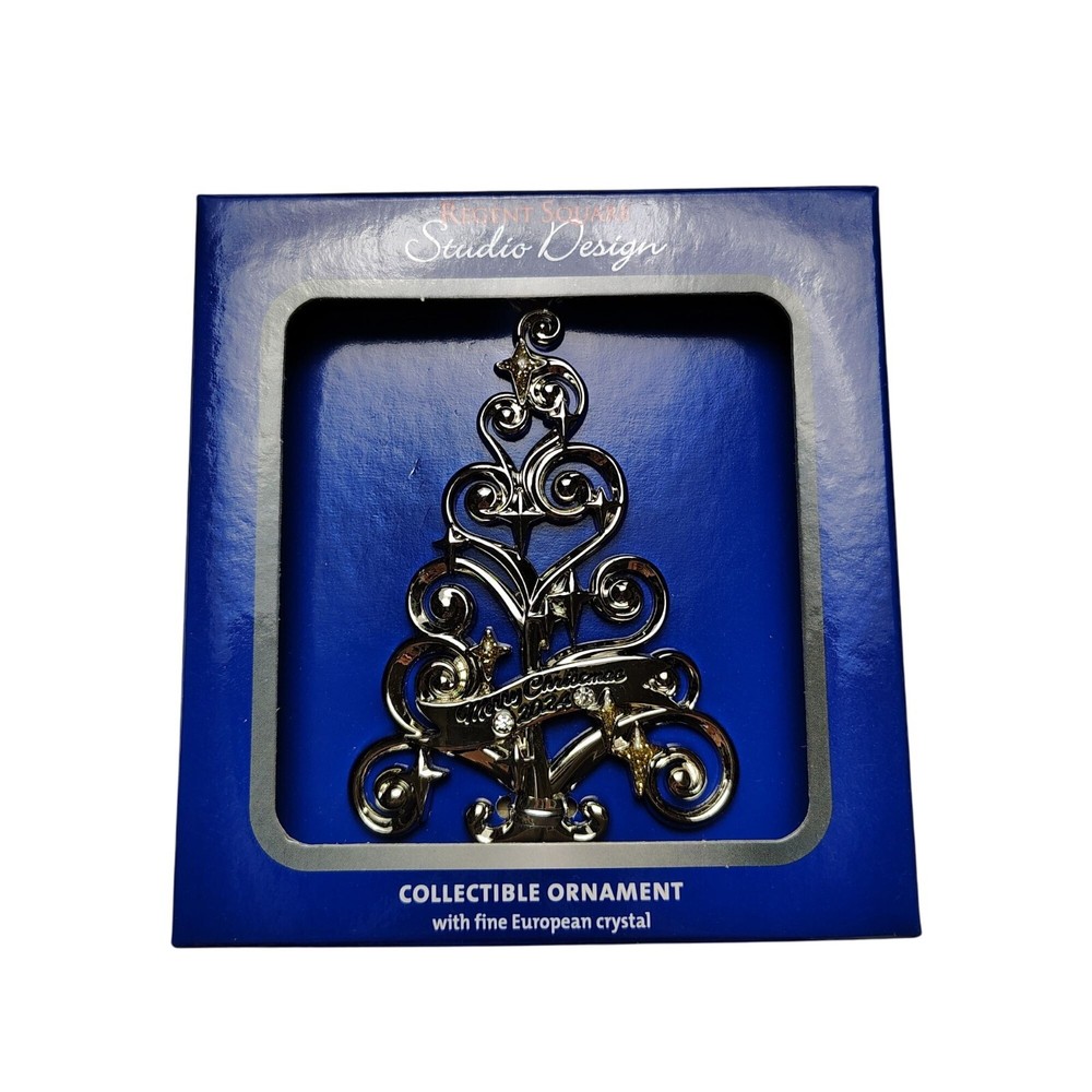 This intricately crafted tree-shaped ornament gleams with fine European crystals, a testament to Swarovski's signature artistry. Encased in original packaging, it's a piece that adds timeless elegance to holiday décor. The ornament's delicate swirls and sparkling accents evoke a sense of luxury and festive sophistication. • Tree-shaped design with elegant swirls • Made with fine European crystals for a luxurious touch • Comes in original display box for storage or gifting • Limited edition collectible item • Suitable for indoor decorative purposes only • Merry Christmas 2024 Box dimensions = 4.5 x 4.5 inches