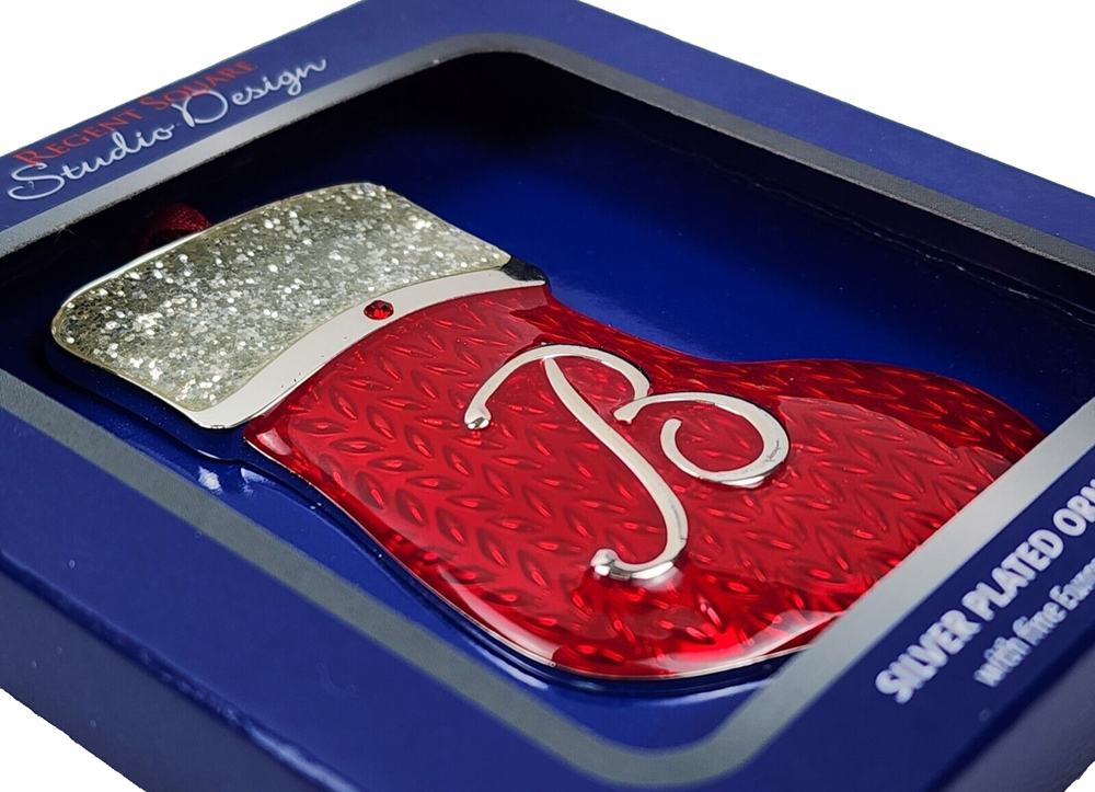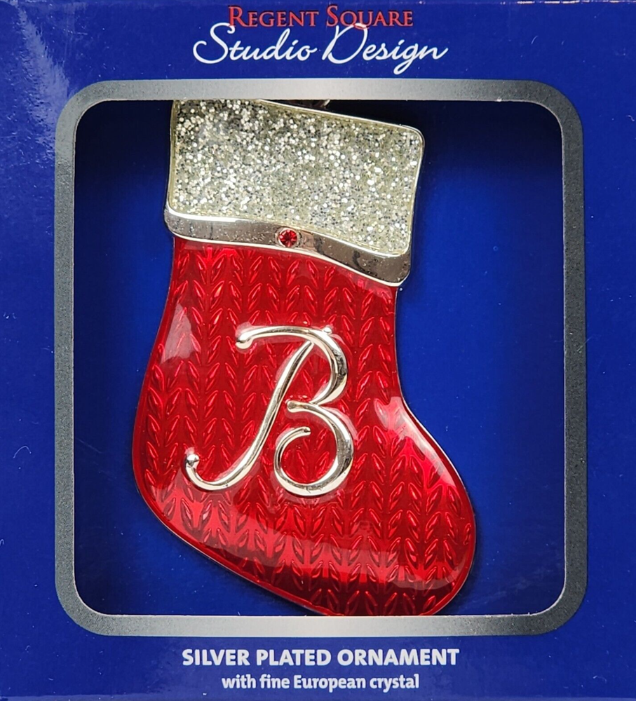 Add a touch of elegance to your Christmas tree with this Regent Square Studio Design "B" Initial Silver Plated Christmas Ornament. Crafted in China, this original ornament features a beautiful silver plated finish and a unique design that will make it a standout addition to your collection. Measuring 3 inches in height, this ornament is perfect for any adult who wants to add a touch of personality to their holiday decor. Whether you're a collector or just looking for a special ornament to cherish, this sparkly red stocking with a silver B is sure to impress. *We make an effort to keep shipping as inexpensive as possible and are always happy to combine shipping on like items. *Before placing your order, please be sure to have the correct address you would like your order shipped to. We will not change the address after the order has been placed. You would need to cancel the order and change the address and then place a new order. Thank you, Blue Eagle Emporium
