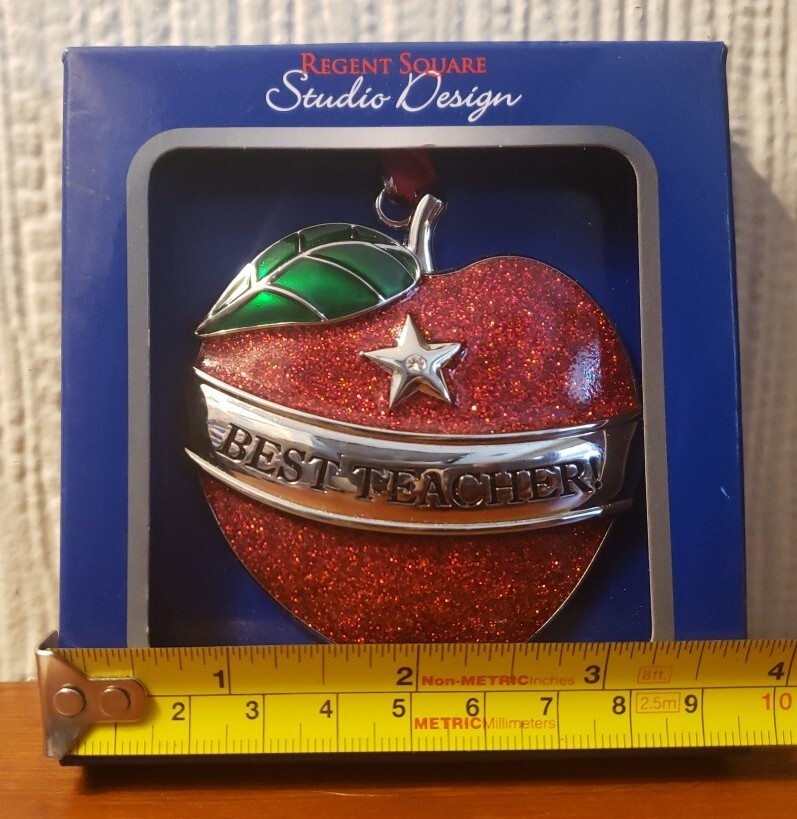 This Regent Square Studio Design BEST TEACHER European Crystal Collectible Ornament is a perfect addition to your ornament collection. Crafted from high-quality metal, this square-shaped ornament is an ideal choice for the Christmas occasion. The ornament features a unique design that highlights the recipient's role as a teacher. It is a perfect gift for anyone who loves collecting unique and beautiful ornaments. The unit quantity is one, and the ornament is manufactured in China. This collectible ornament belongs to the Ornaments collection and is categorized under Collectibles, Holiday & Seasonal, and Ornaments.