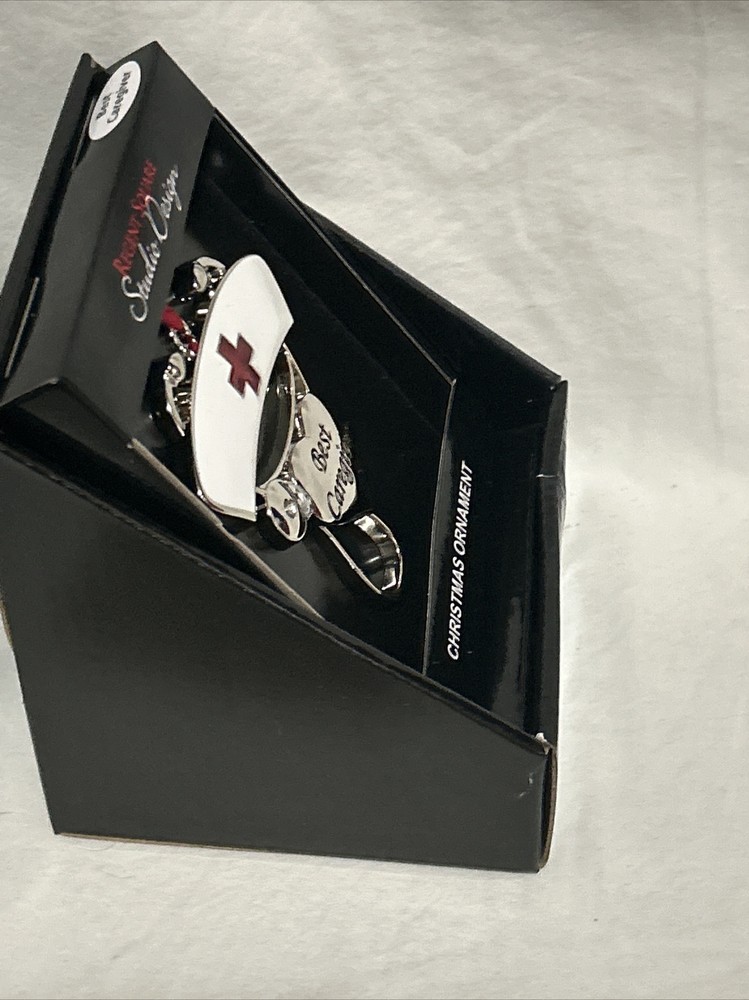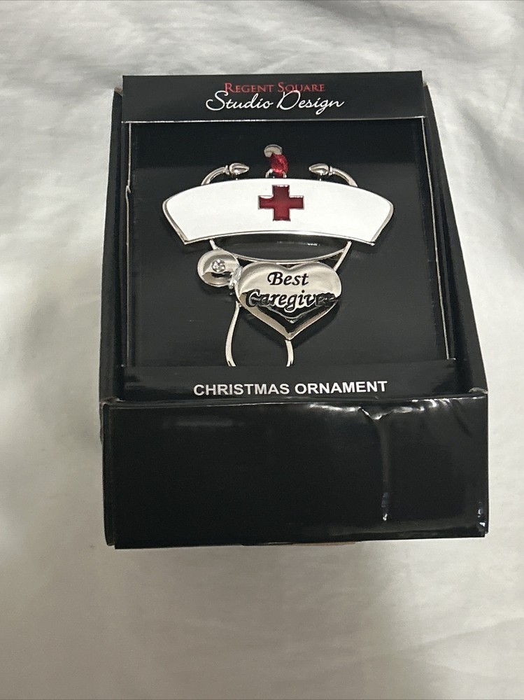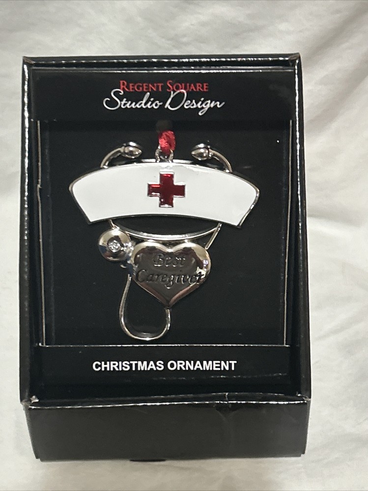 Regent Square Studio Design Best Nurse Christmas Ornament Brand New SHARP NICE Add some holiday magic to your Christmas tree with this beautiful Regent Square Studio Design Best Nurse Ornament. Made of high-quality metal, this licensed reproduction ornament features a stunning American Directoire style and comes in white and silver color, making it a perfect addition to your holiday decorations. Measuring 3 inches in length and width and 0.25 inches in height, this medium-size ornament comes with a square shape and a decorative pattern, making it an ideal gift for any nurse or caregiver. This Best Nurse Ornament by Regent Square is perfect for spreading cheer and joy during the festive season. Its unique design and intricate details make it an eye-catching piece that will grab everyone's attention. Celebrate the holidays in style and show your appreciation for the nurses in your life with this beautiful ornament.