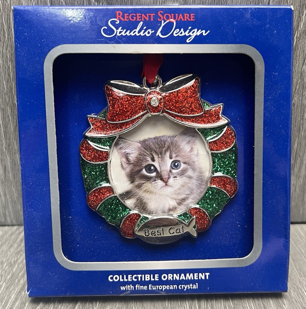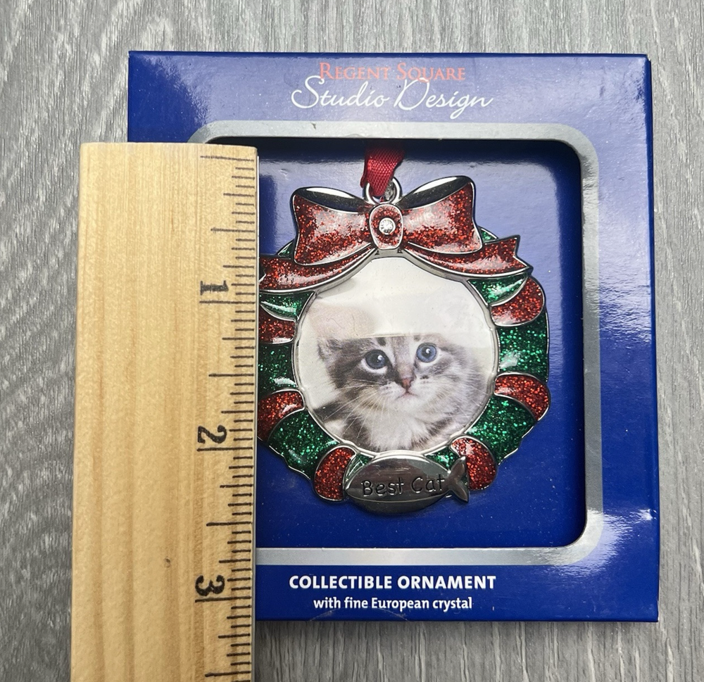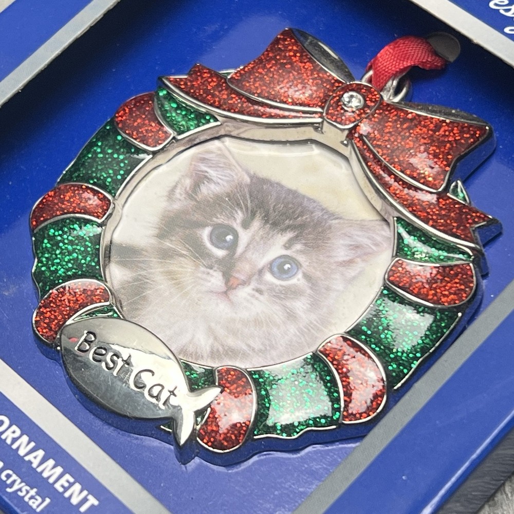 This adorable cat ornament is absolutely stunning! The European crystal adds a touch of elegance, and the craftsmanship is top-notch. It arrived brand new in its original packaging, just as described. The perfect gift for cat lovers or a charming addition to any holiday decor. Highly recommend!