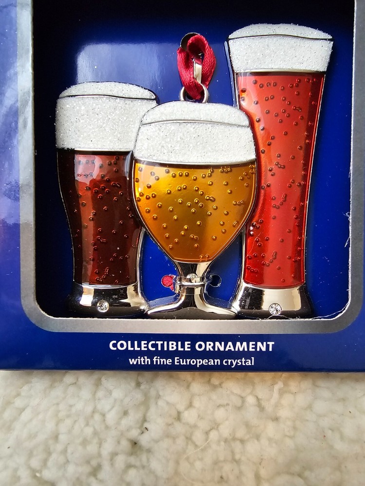 Collectible Ornament with Fine European Crystal New in Package Style: Beer Glasses Size: 3"...