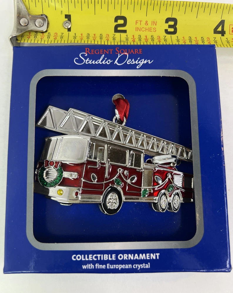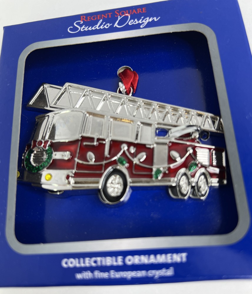 Regent Square Studio Design Fire Engine Christmas Ornamental New W European Crystal. NIB