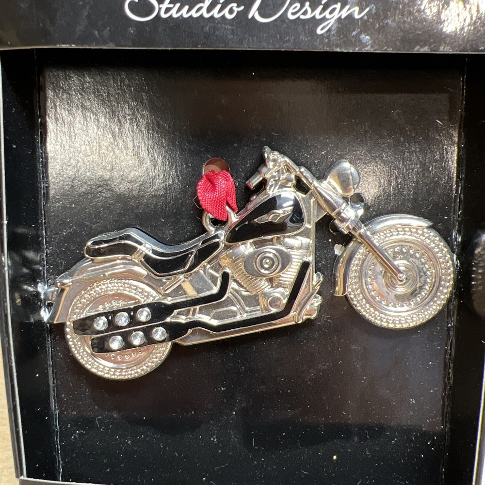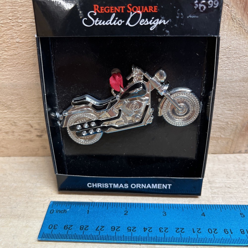 Add a unique touch to your Christmas tree decorations with this exquisite Regent Square Studio Design MOTORCYCLE Holiday Tree Ornament. Made from high-quality metal material, this medium-sized ornament is perfect for any motorcycle enthusiast. The silver color and intricate details of the motorcycle make it a one-of-a-kind addition to your holiday decor.