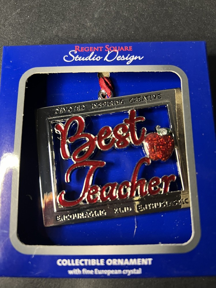 This beautiful ornament from Regent Square Studio is a perfect way to show your appreciation for a great teacher. Crafted with fine European crystal, it features a square shape and a lovely design that will add a touch of elegance to your holiday decorations. The ornament is part of the Ornaments collection and is perfect for anyone who loves collecting unique and beautiful pieces. It is a great gift for anyone who has been a great teacher in your life. Add this stunning ornament to your collection today!