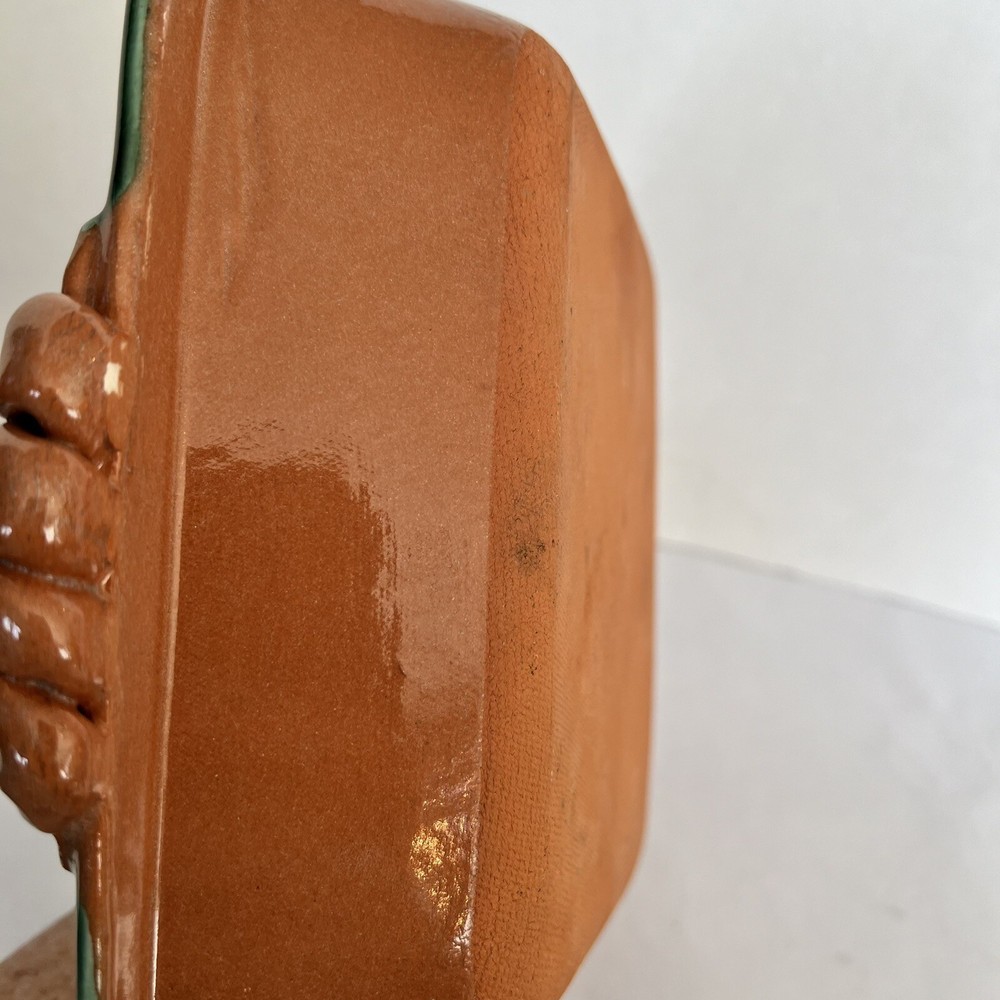 This handmade pottery dish is absolutely stunning! The thick, heavy design gives it a solid, luxurious feel, and the stamped TI mark adds authenticity. The 9.5” size is perfect for serving or display, and the earthy, artisanal craftsmanship makes it stand out. Love the weight—feels like a premium, well-made piece. A great addition to any kitchen or decor!