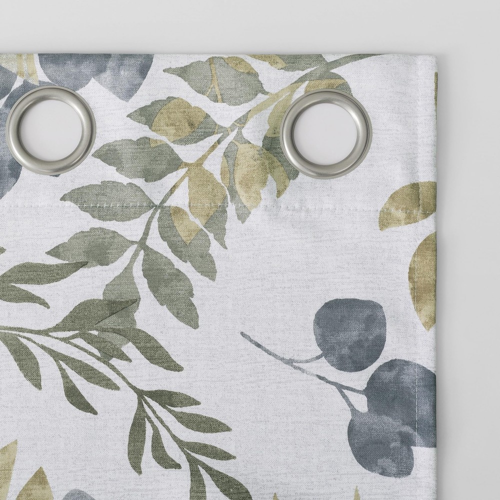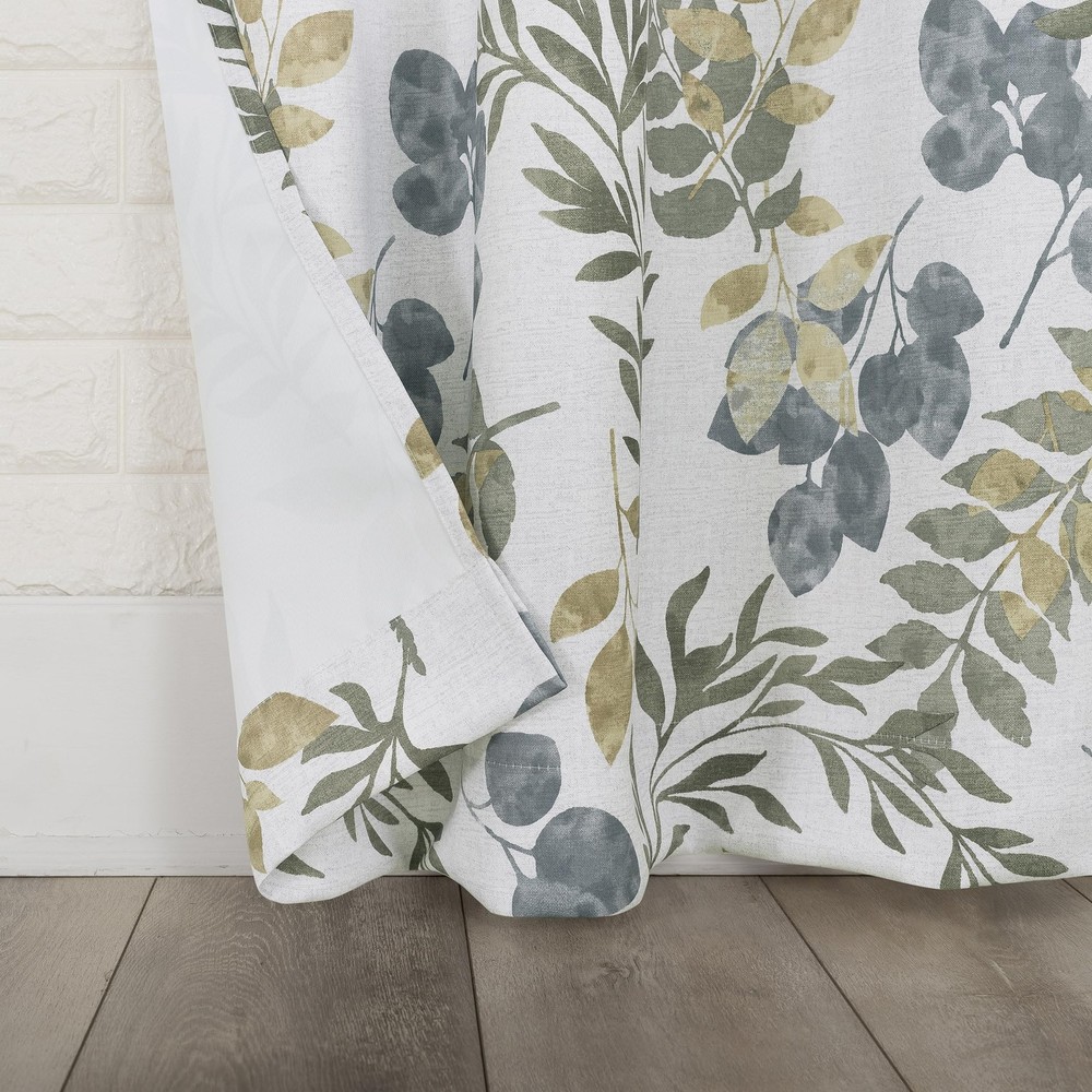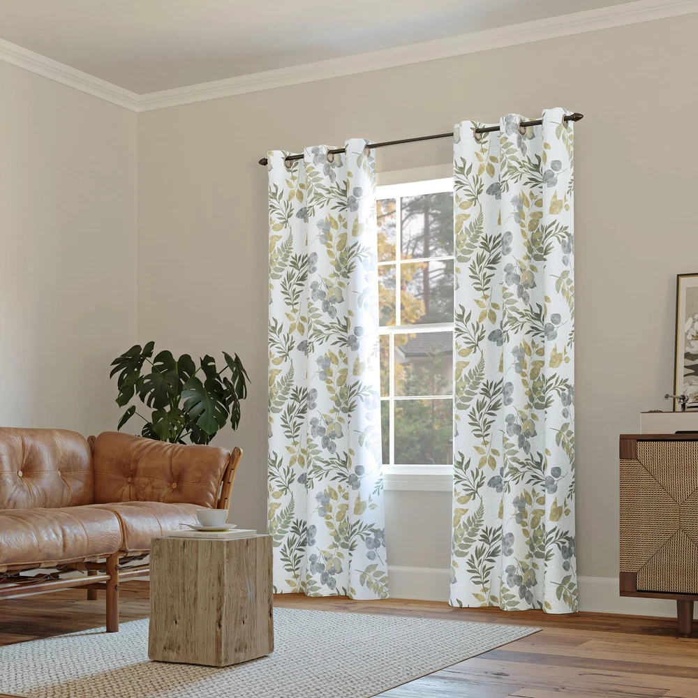 Botanical leaf print design Blackout technology blocks out most unwanted light while enhancing privacy Energy Efficient design reduces energy lost through your windows by up to 25% Thermal properties help keep summer heat and winter chill out of your home Noise reduction up to 25% helps you get a sounder, more uninterrupted sleep Built-in metal grommets fit curtain rods up to 1.5" in diameter