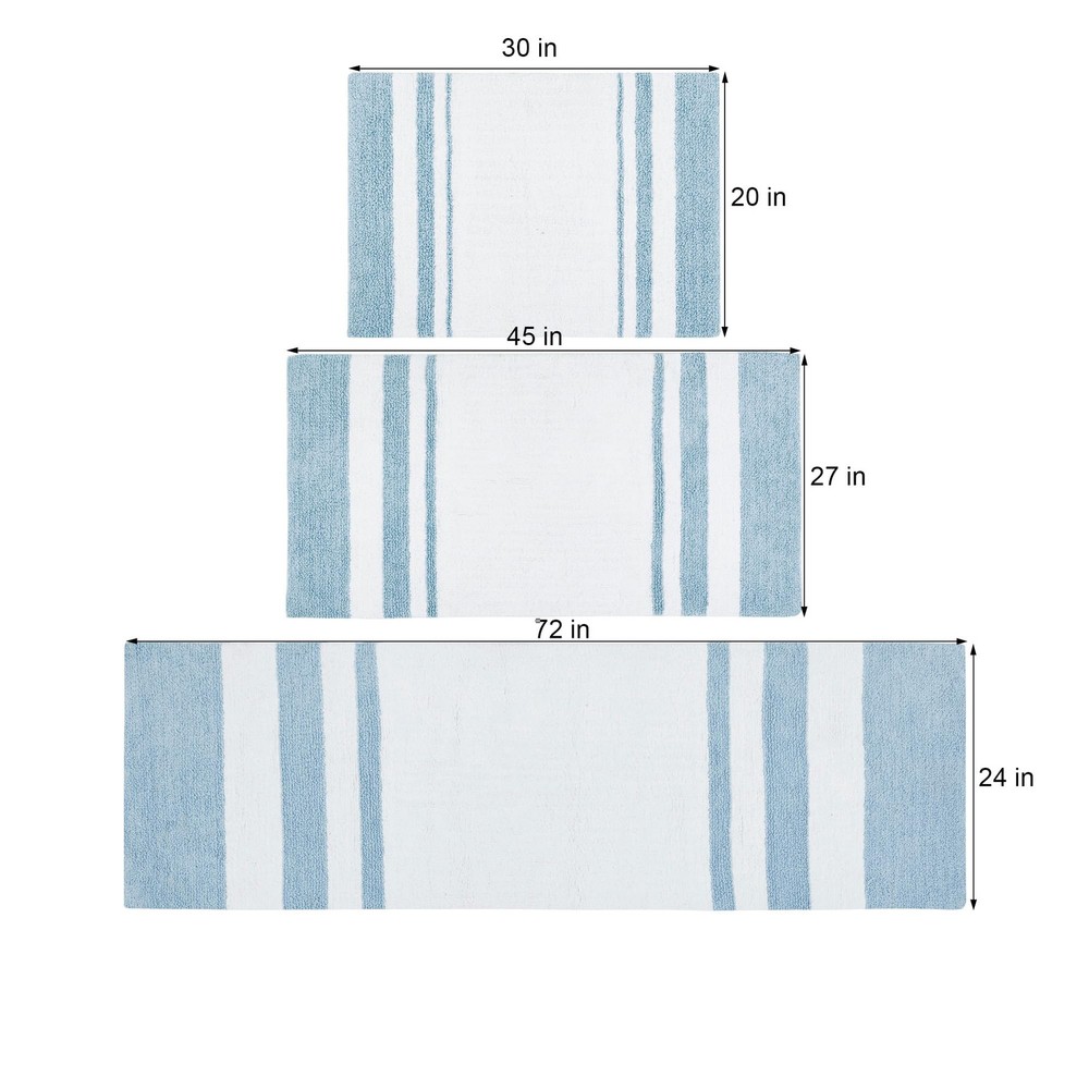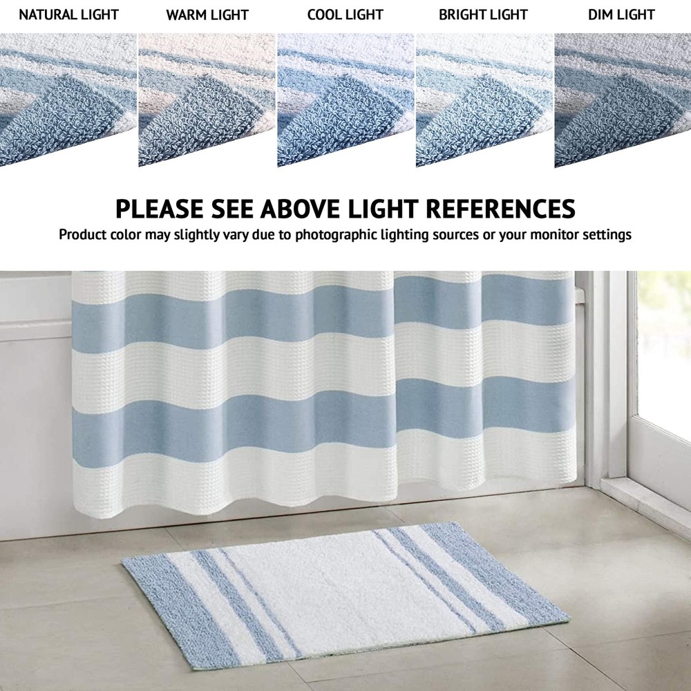 Update your bathroom with the Spa Cotton Bath Rug. This 100% cotton, reversible rug has both cut and looped cotton on each side in contrast fashion colors to a white ground for a spa look within your home. The soft highly absorbent cotton on both sides will feel fluffy and absorbent on your feet! A rug pad is highly recommended for safety and to keep rug secured in place. Due to the looped cotton construction, some threads may come undone after wash/dry; simply cut and trim any loose threads by hand as needed. Machine washable for easy care; Complete the look with coordinating shower curtain, available and sold separately. 100% Cotton Reversible rug has both cut and looped cotton on each side In contrast fashion colors to a white ground for a spa look within your home. OEKO-TEX Certified, includes no harmful substances or chemicals The mat's construction allow the water held in the mat to dry quickly and keep bathroom floors dry & clean. 1 Rug: 20"W x 30"L Care instructions: machine wash cold