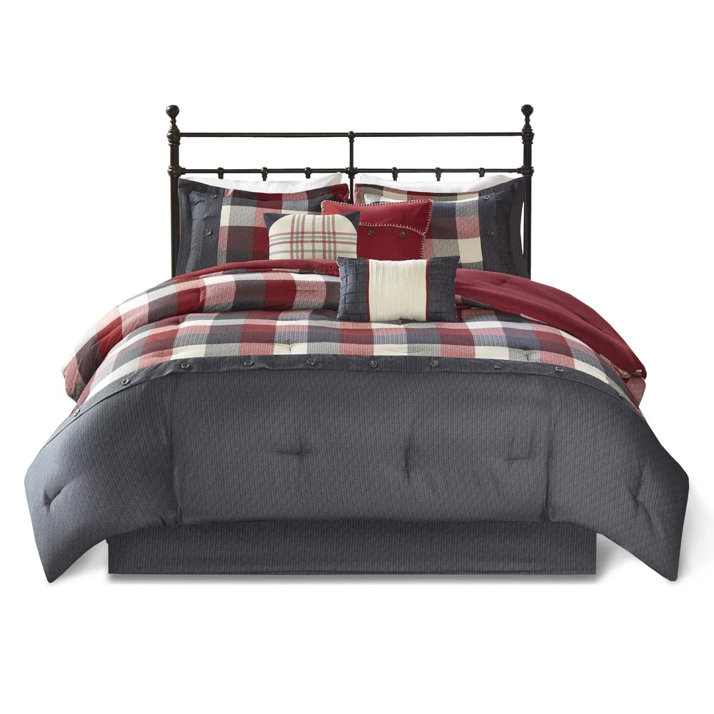 Absolutely love this comforter set! The buffalo plaid and herringbone design gives it such a cozy, cabin-chic vibe. Super soft fabric with just the right weight—perfect for all seasons. The included shams, bedskirt, and decorative pillows complete the look effortlessly. Machine washable is a huge plus for easy care. Feels premium, looks stylish, and the stitching details are flawless. Makes my bedroom feel like a cozy lodge retreat! Highly recommend.