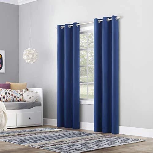 These blackout curtains are fantastic! They block out light perfectly, making naps and bedtime so much easier. The classic blue color is vibrant and looks great in my kid's room. The fabric feels sturdy, and the grommets make opening and closing them smooth. Super happy with this purchase—definitely recommend for any nursery or playroom!