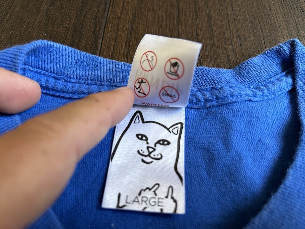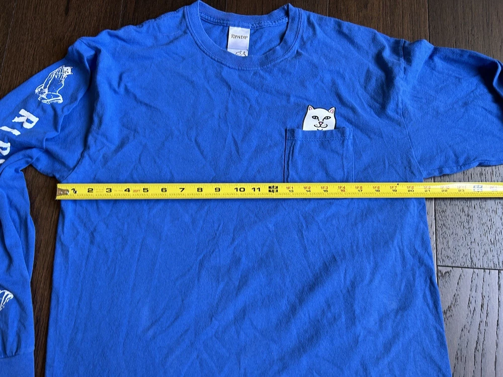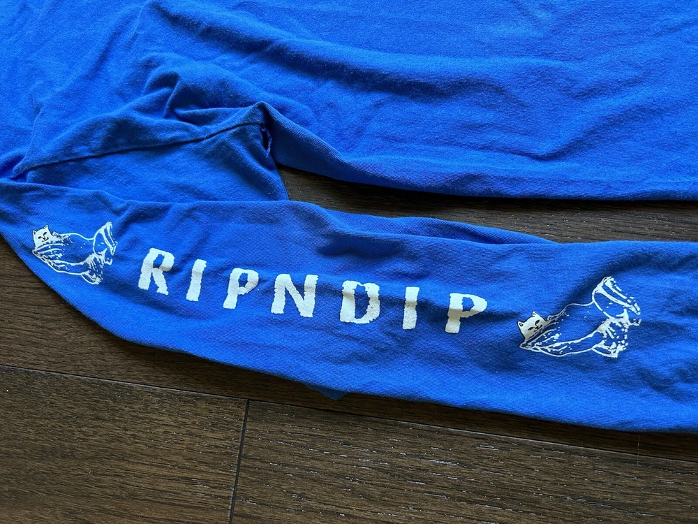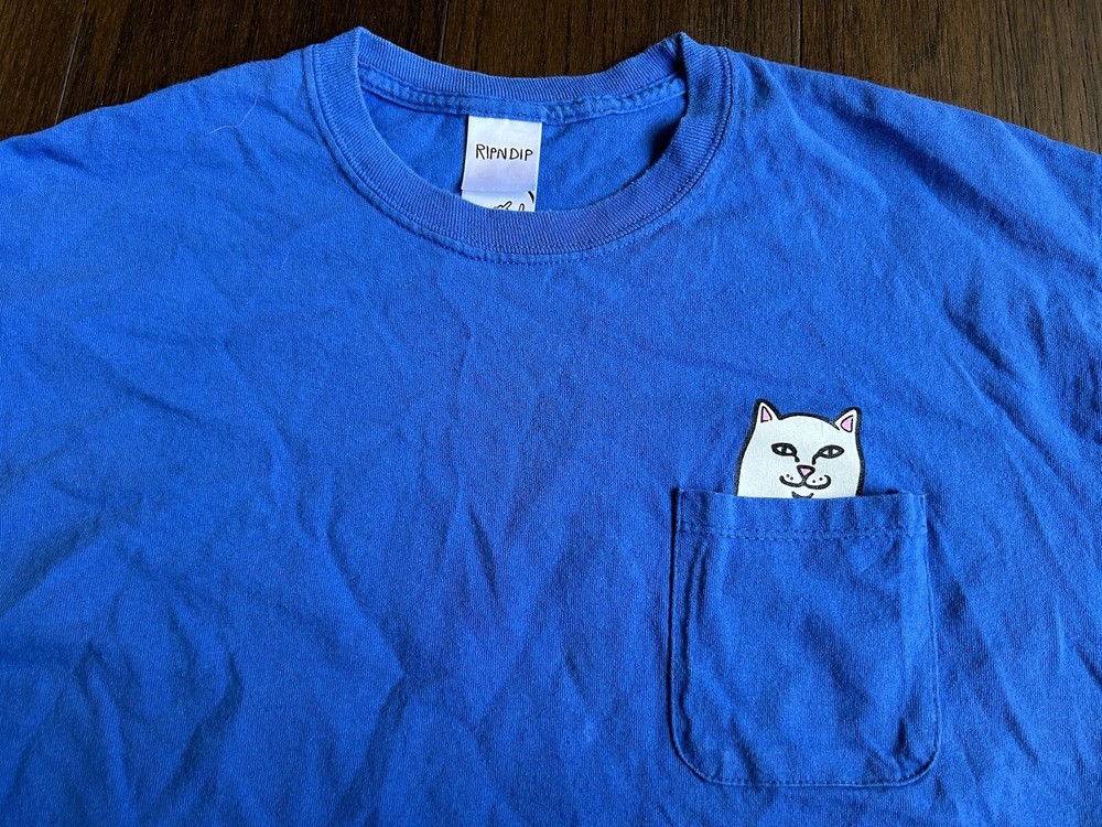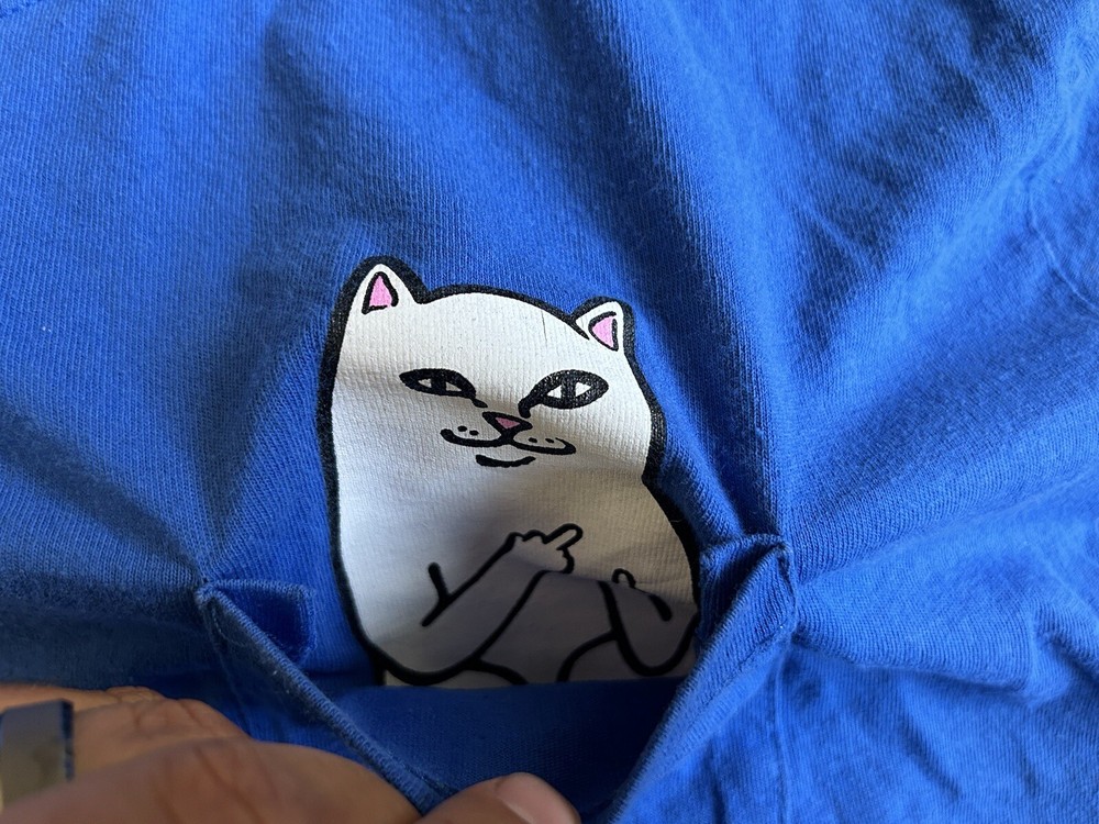 Rip N Dip Cat Middle Finger Pocket Blue Long Sleeve Shirt Size L. It is in very good condition.