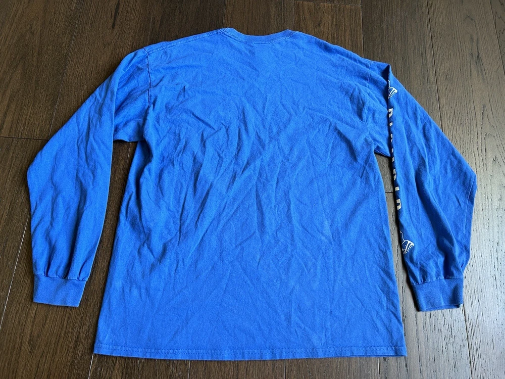 This shirt is awesome—super soft and comfy with a fun hidden cat design in the pocket! The blue color is vibrant, and the fit is perfect for a size L. It’s in great condition, looks almost new. Definitely a unique, stylish piece that gets compliments. Worth every penny!