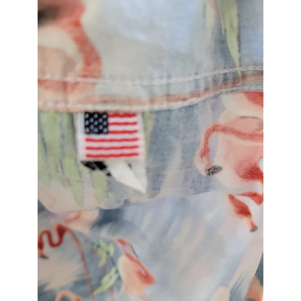 This shirt is a total vibe! The pink flamingo print is fun and eye-catching, perfect for summer outings or casual hangs. The 100% cotton fabric is super soft and breathable, and the fit is just right—relaxed but not oversized. Even though it’s pre-owned, it’s in excellent condition with no noticeable wear. Love the quirky Rip N Dip style, and the fact that it’s made in the US is a nice bonus. Definitely a unique piece that stands out!