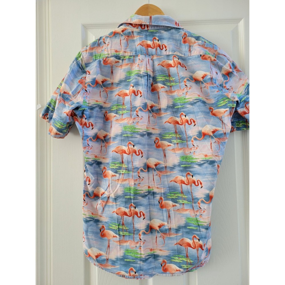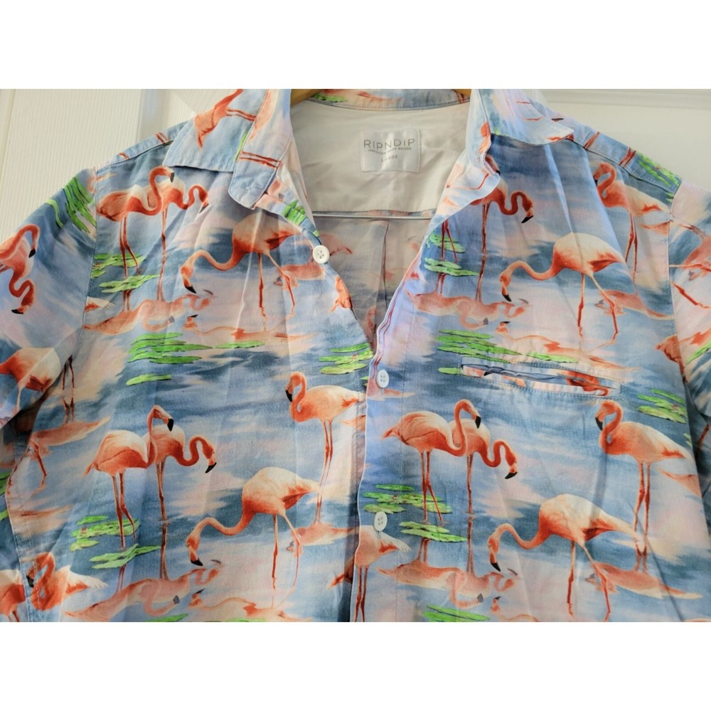 Rip N Dip Mens Pink Flamingo print Camp Shirt button down size Large Material 100% Cotton Made in the US In very good pre-owned condition C11 bin