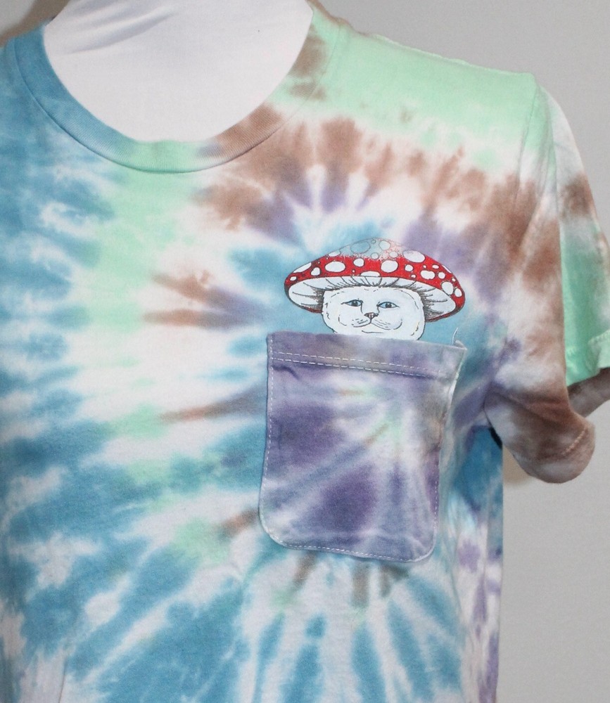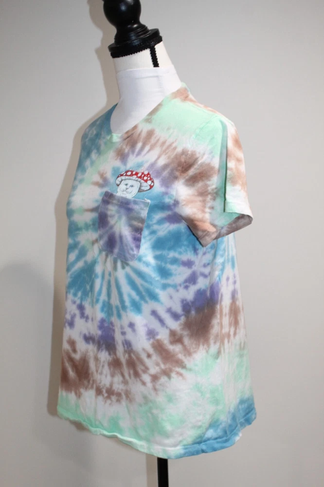 Rip N Dip Pocket Mushroom Cat Blue Green Tie Dye Size L Very nice pre owned condition with no stains, holes, rips or tears. Measurements while laid out flat are chest 18.5“, shoulder to shoulder 14.5“ and length 24“. Comes from a completely smoke and free home best of all. If you have any questions, please don’t hesitate to contact us. 11/14/23 6