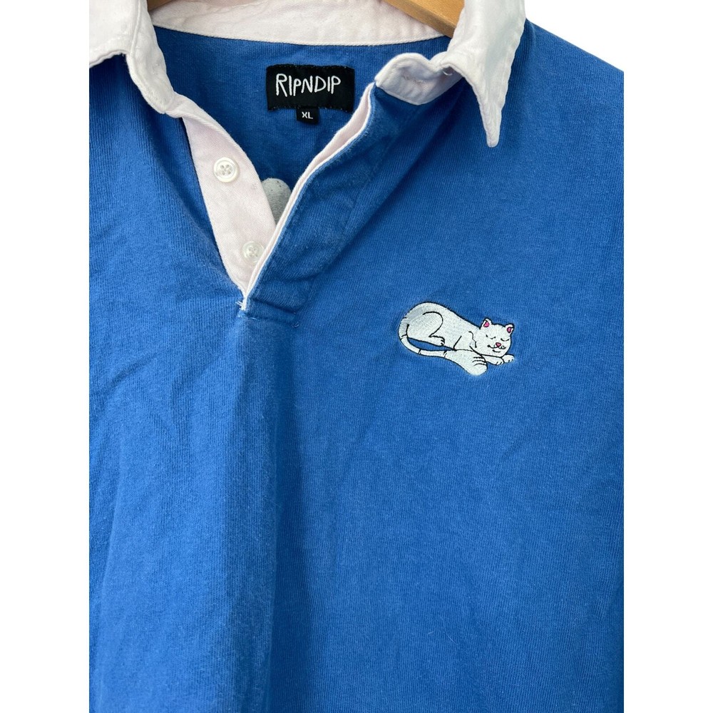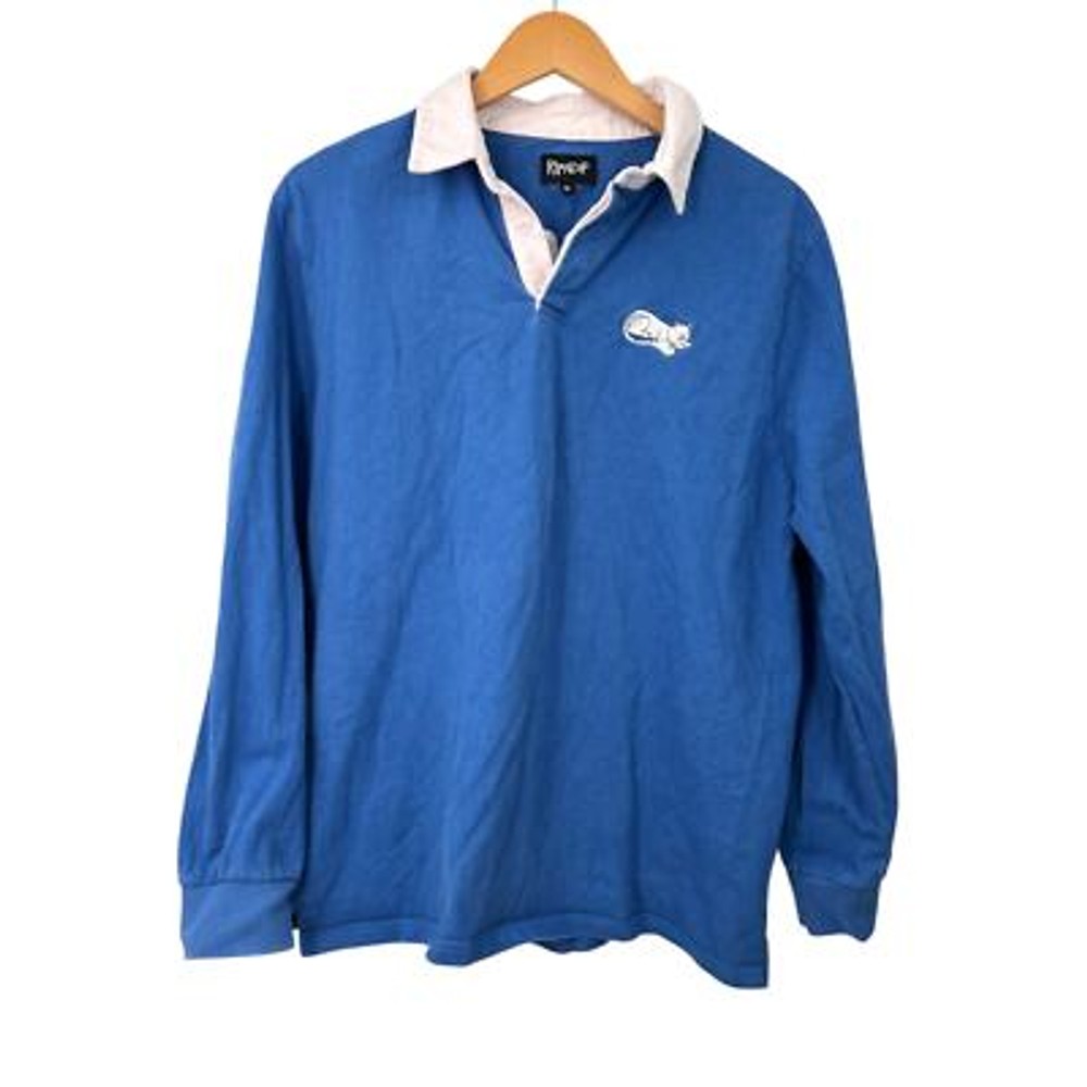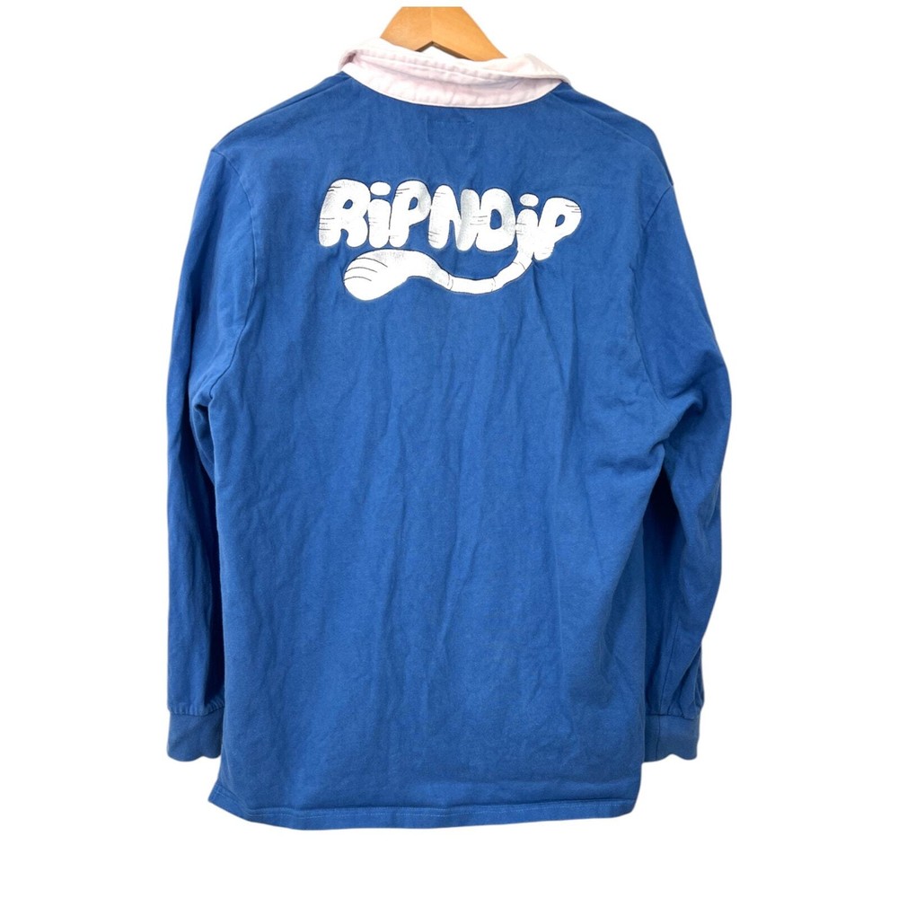 <![CDATA[<div>Rip N Dip RIPNTAIL long sleeve polo shirt in navy and white. The white seems to have a pink tint. I made no attempts to treat. Measurements: 25" Length (Shoulder to Hem) 18" Width (Armpit to Armpit) All measurements are approximate and are taken laying flat. If you have questions please feel free to ask me :) Very gently used, pre-owned item. No obvious flaws or significant wear.