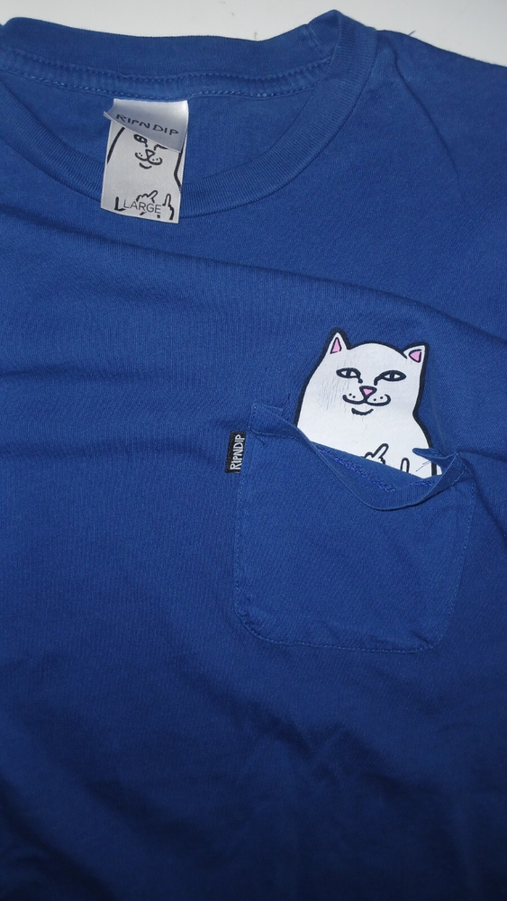 The Rip n Dip Hidden Pocket Middle Finger Cat T Shirt in size L is a stylish and comfortable garment perfect for everyday wear. Made from cotton with a solid blue color, this short sleeve t-shirt features a crew neckline and a regular fit. The standout design elements of this shirt include the hidden pocket with a unique middle finger cat motif, adding a playful touch to the overall look. Machine washable and suitable for all seasons, this t-shirt by RIPNDIP is a must-have for cat lovers and those looking to make a statement with their fashion choices.