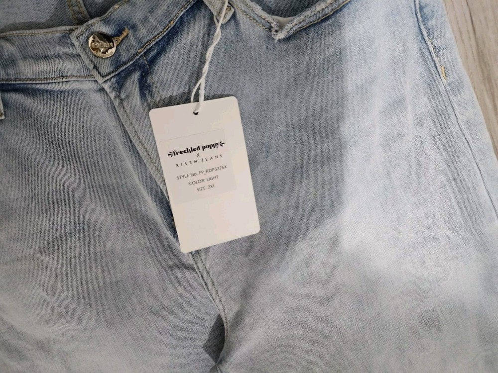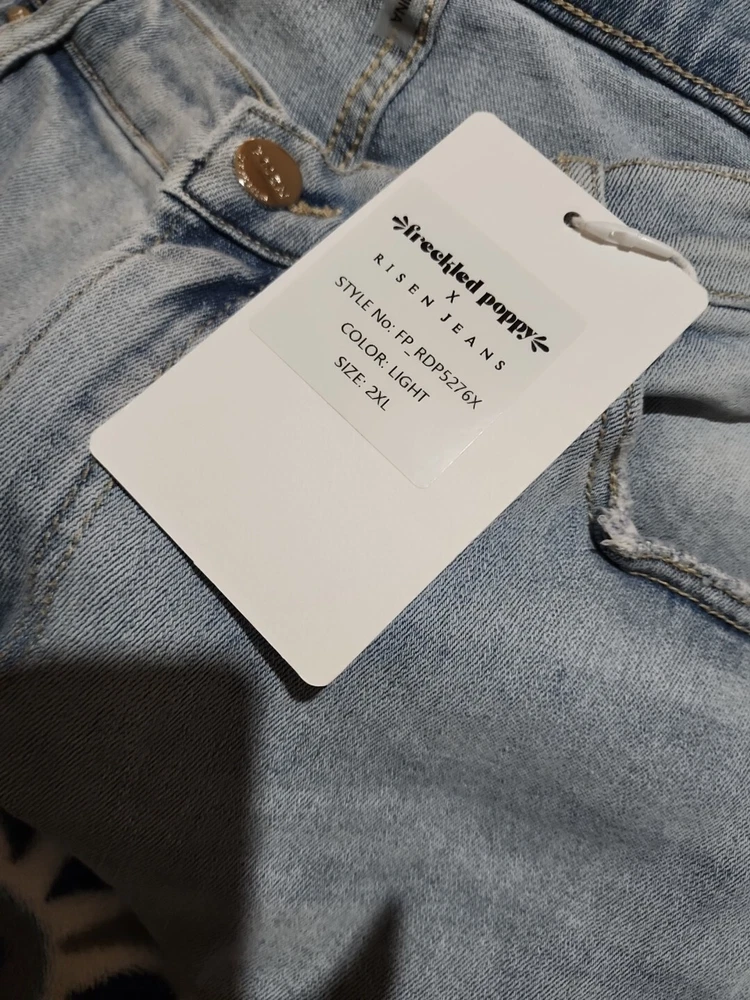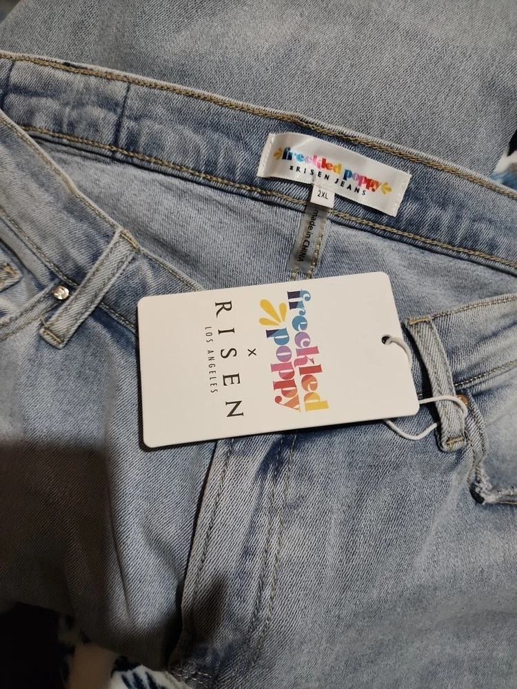 New with tag Risen Freckled Poppy Jeans Women's 2XL Dipped V Wide Leg Light Wash Denim in excellent condition without holes, rips or tears! Come from a smoke free environment! Thanks for looking!