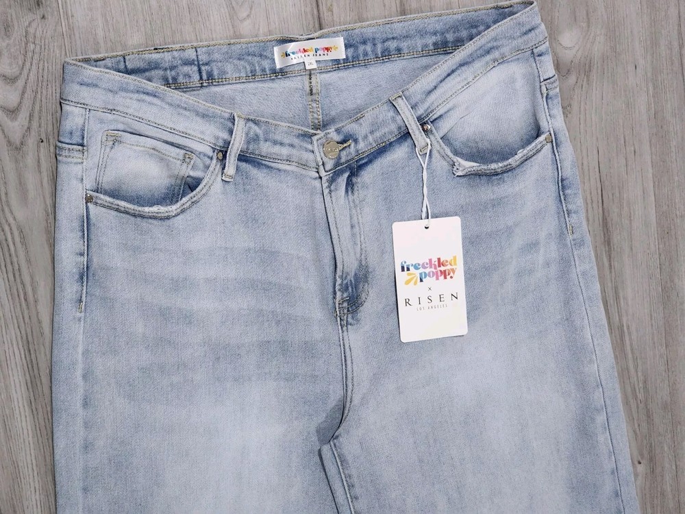 New with tag Risen Freckled Poppy Jeans Women's 2XL Dipped V Wide Leg Light Wash Denim in excellent condition without holes, rips or tears! Come from a smoke free environment! Thanks for looking!...